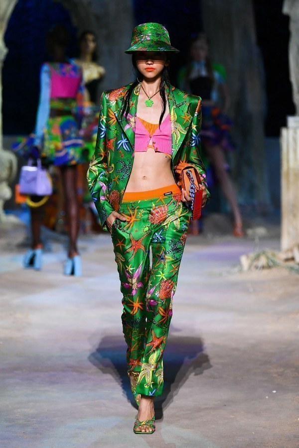 Versace’nin ikonik hale gelmiş olan desenleri ve o desenleri canlandıran turuncu, yeşil, pembe, mavi tonlar derin denizlerin rengarenk görüntüsünü sunuyor. Volan ve fırfır detaylar koleksiyonu hareketlendiren dokunuşlardan. Versace'nin deniz canlılarını tasvir eden ikonik ‘Trésor de la Mer’ baskısı 2021 ilkbahar/yaz koleksiyonuyla geri dönüyor.