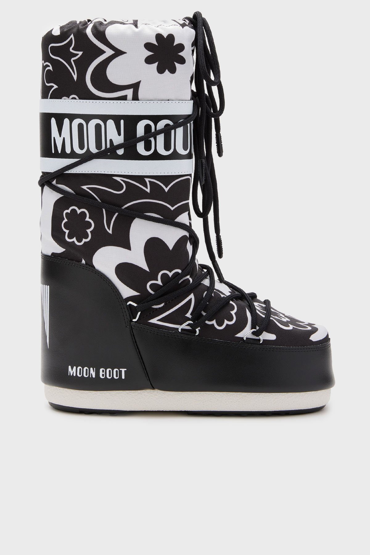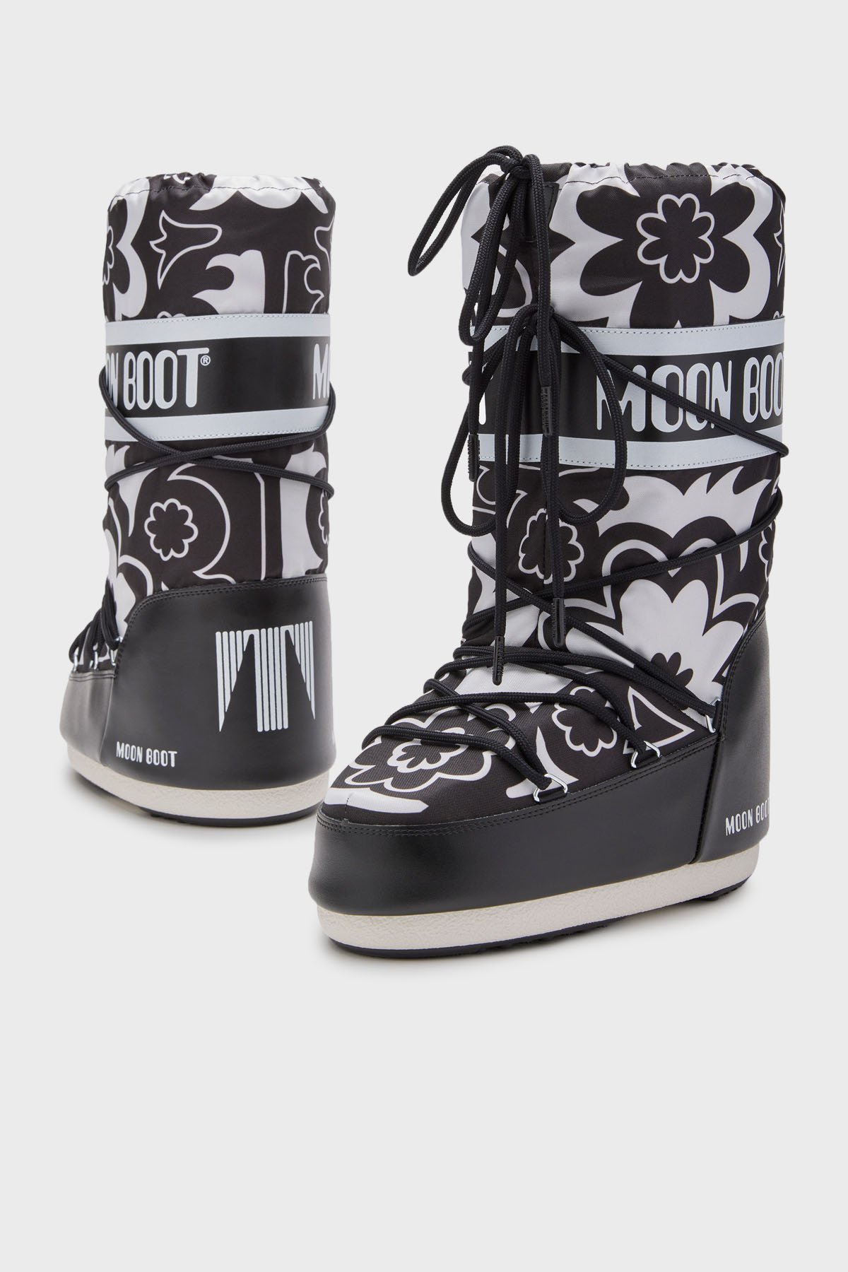 Desenli Logolu Bağcıklı Su İtici Bayan Kar Botu 80D1402940 NA02 SİYAH-BEYAZ