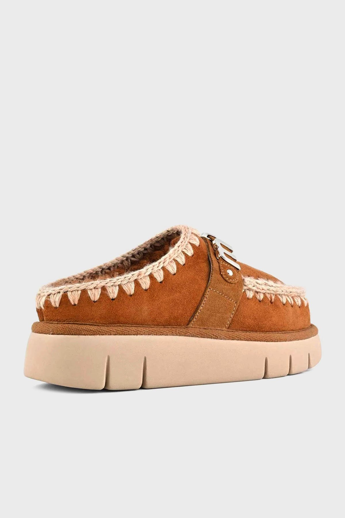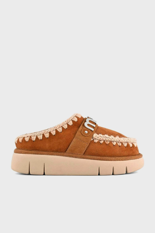 Logolu Hakiki Deri Yumuşak Tüylü Dikiş Detaylı Kalın Tabanlı Eskimo Bayan Terlik MU.FW531001A COG TABA