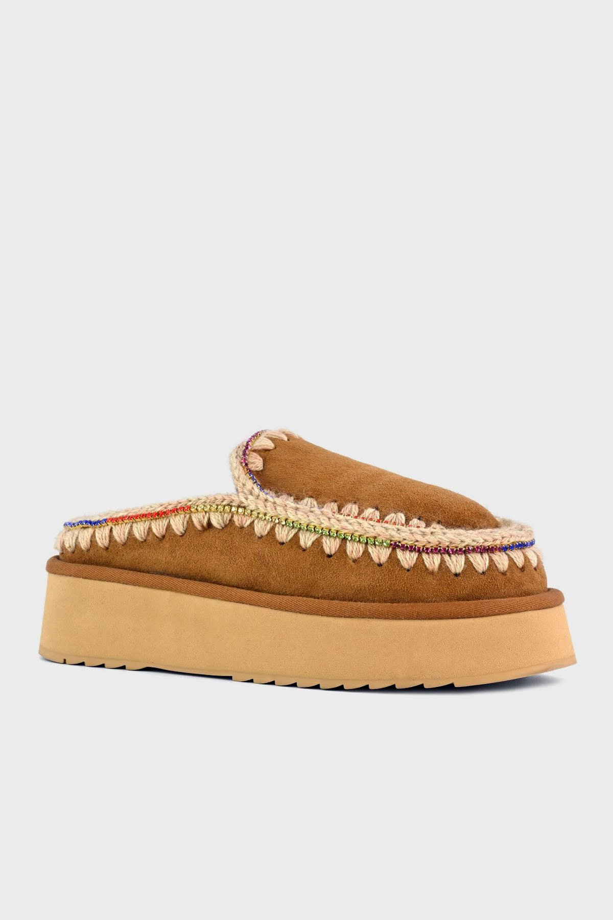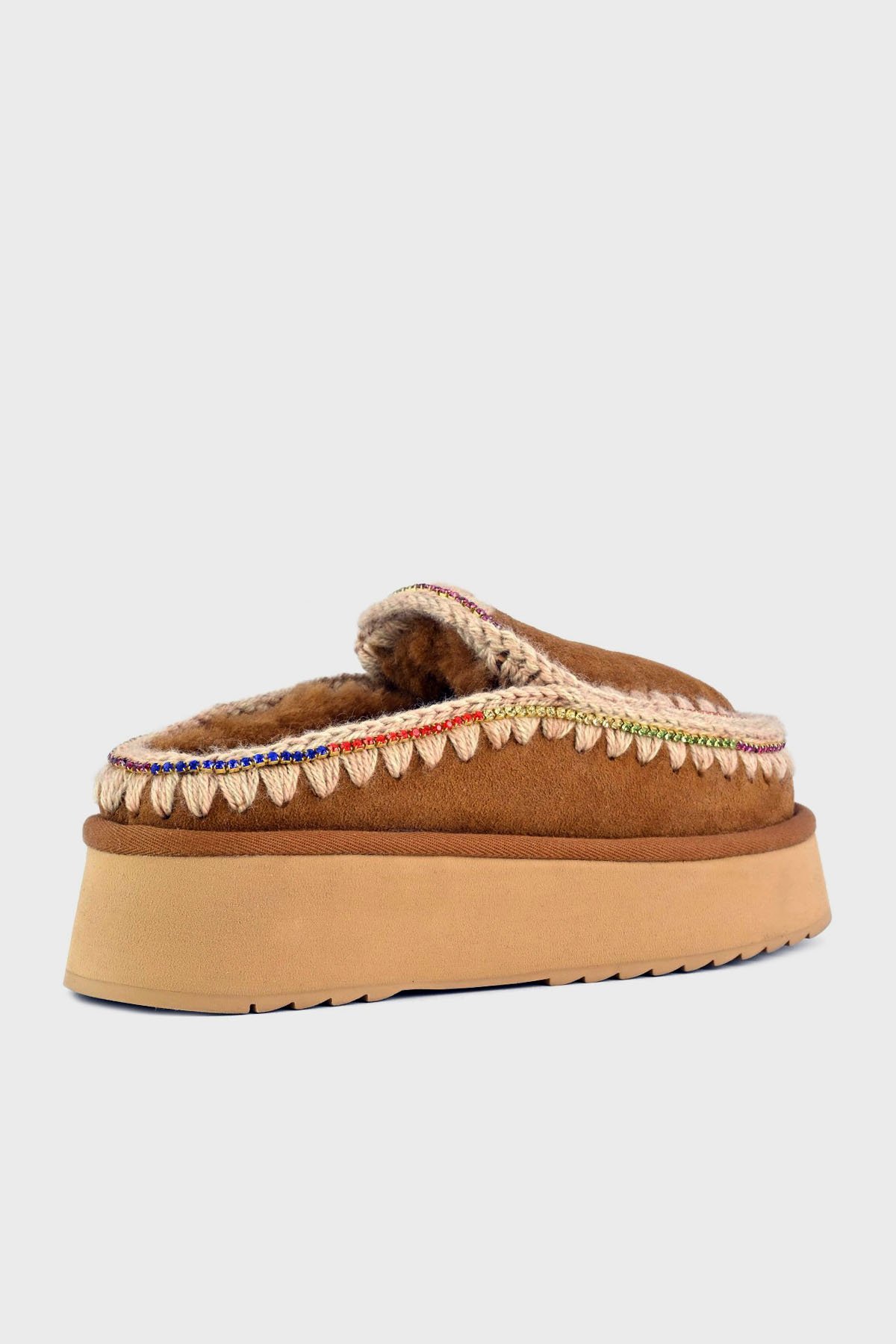 Taşlı Süet Yumuşak Tüylü Eskimo Platform Taban Bayan Terlik MU.FW681001A COG TABA
