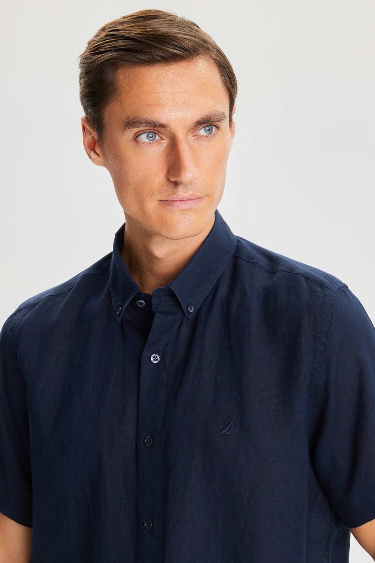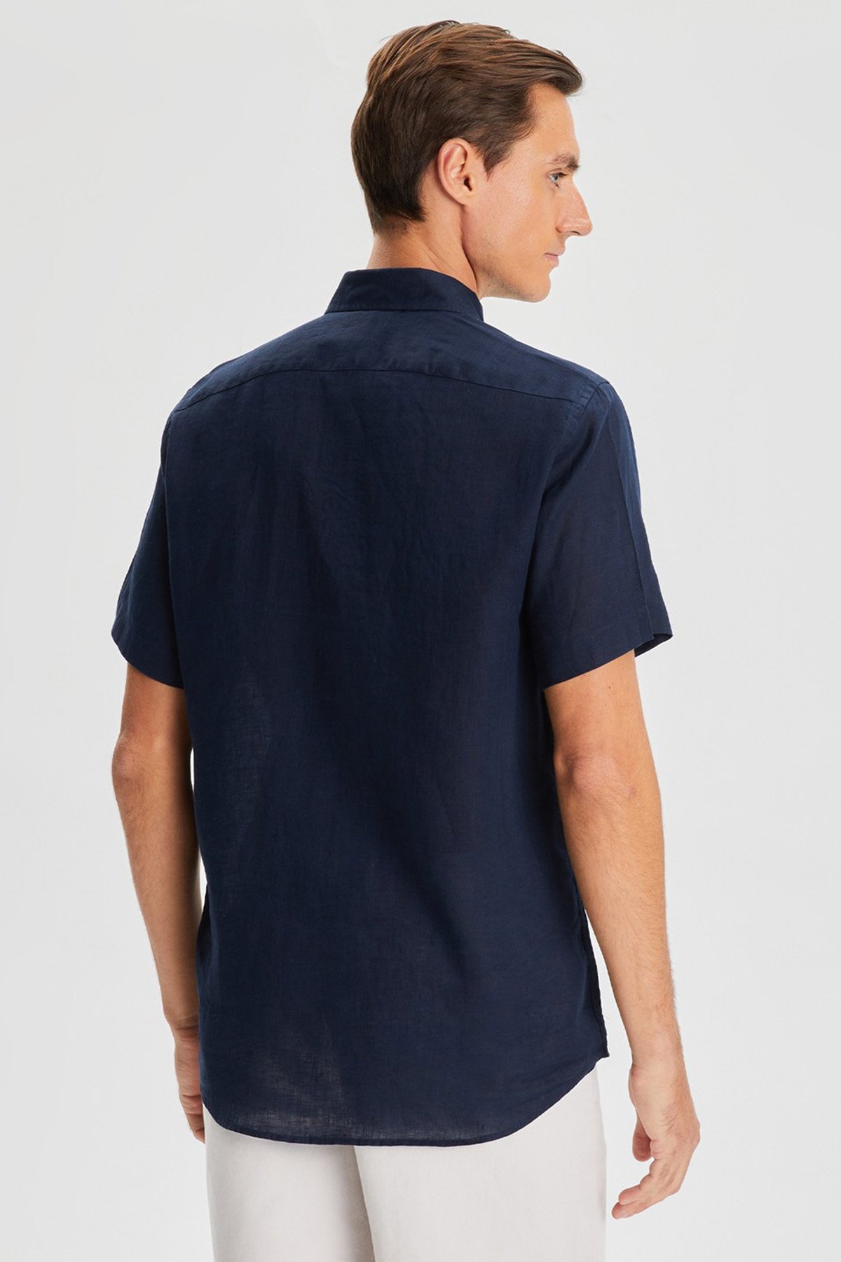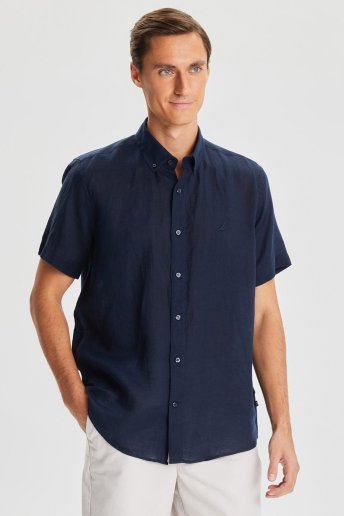 % 100 Keten Classic Fit Kısa Kollu Erkek Gömlek W35100T 4NV LACİVERT