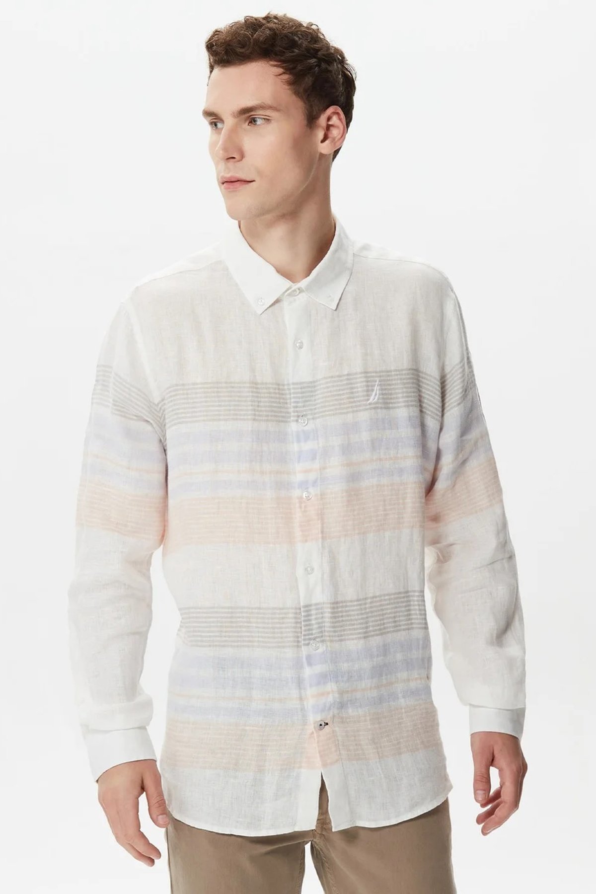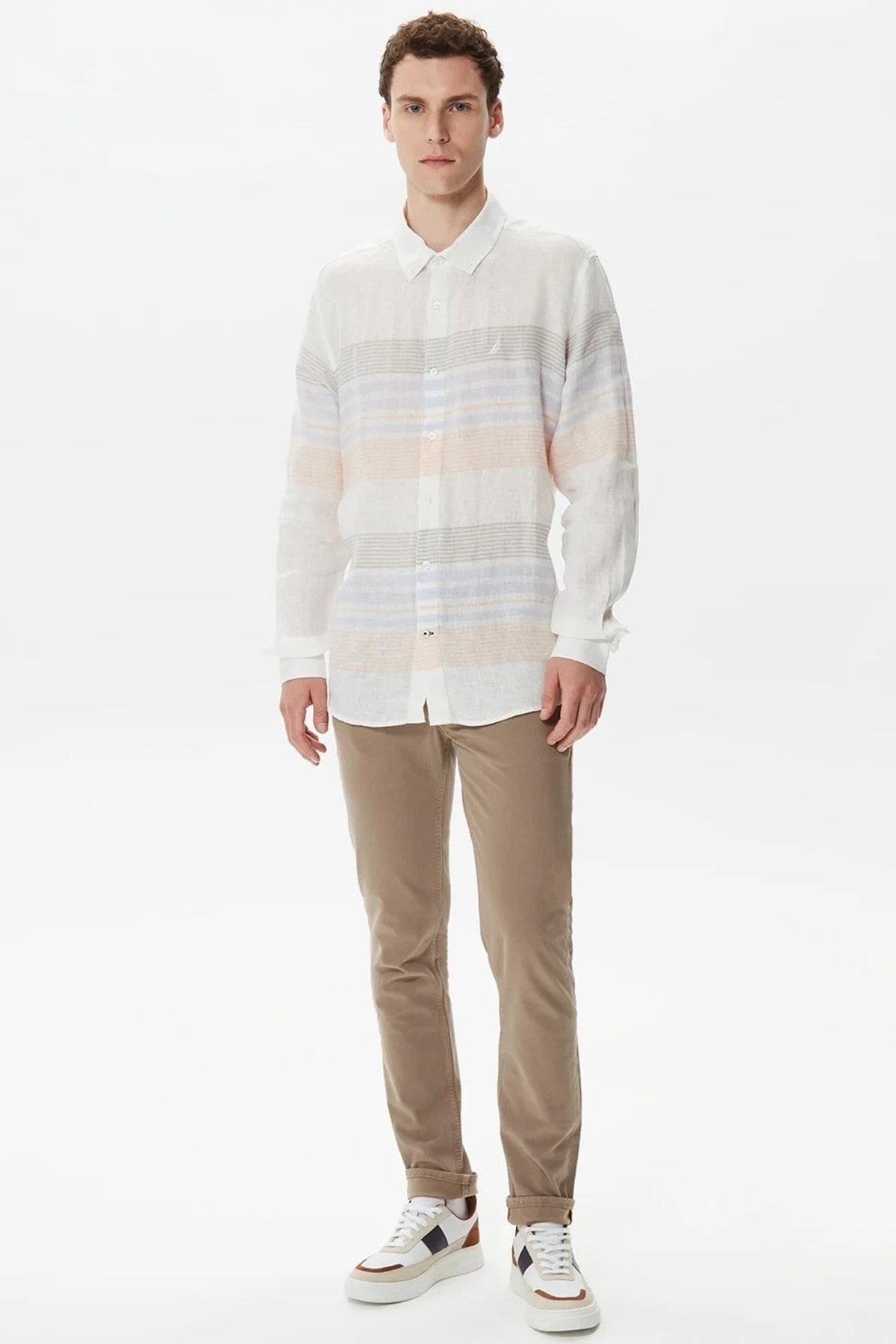 % 100 Keten Classic Fit Uzun Kollu Erkek Gömlek W35520T 1BW BEYAZ