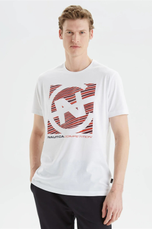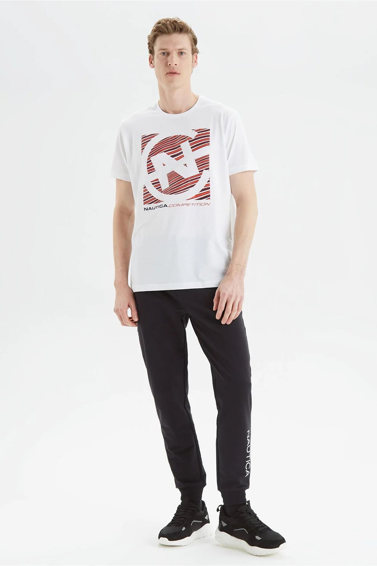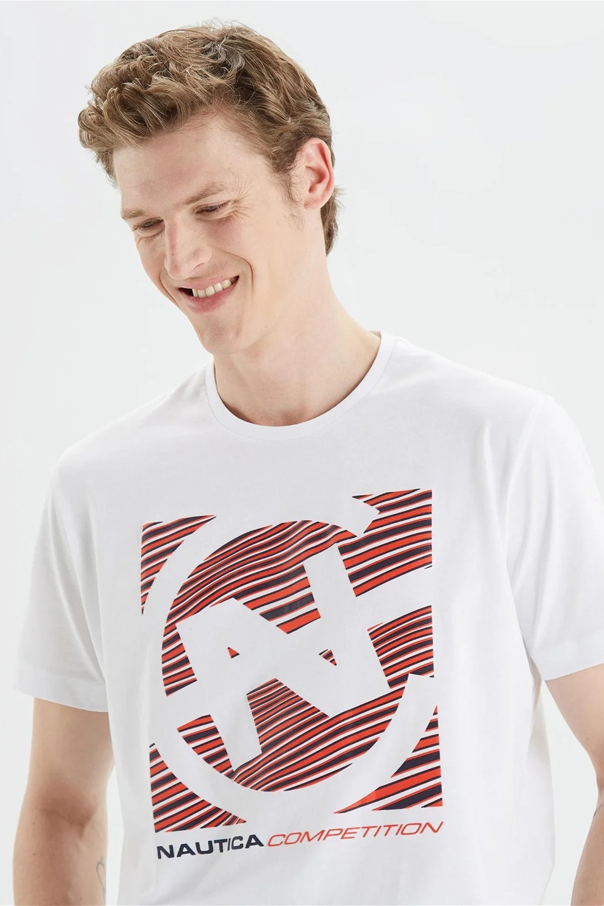 % 100 Pamuk Logo Baskılı Bisiklet Yaka Standart Fit Erkek T Shirt V35409T 1BW BEYAZ