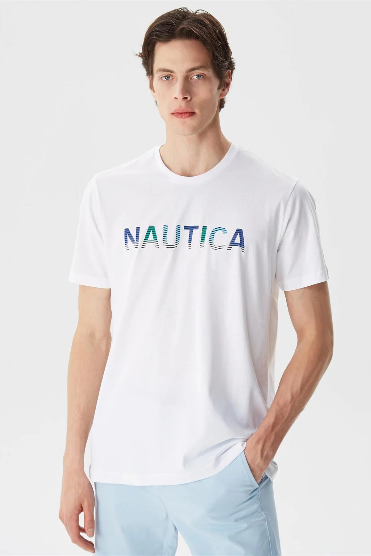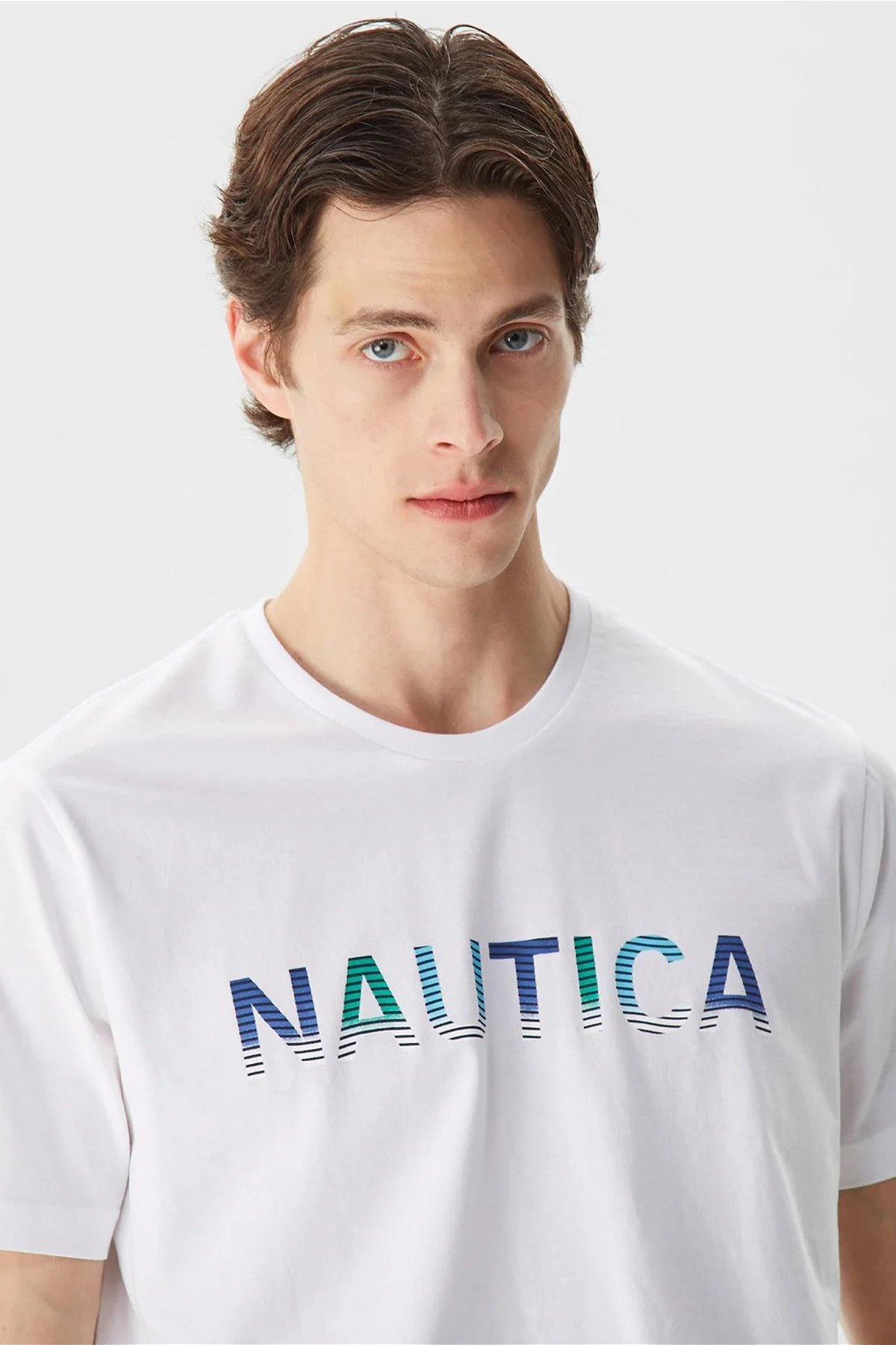 % 100 Pamuk Marka Baskılı Bisiklet Yaka Standart Fit Erkek T Shirt V35506T 1BW BEYAZ