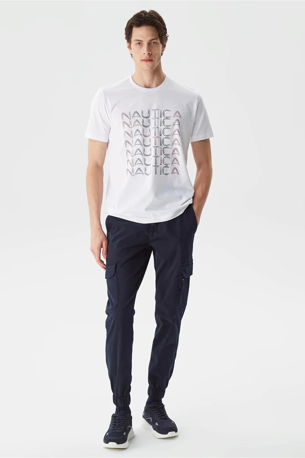 % 100 Pamuk Marka Baskılı Bisiklet Yaka Standart Fit Erkek T Shirt V35528T 1BW BEYAZ