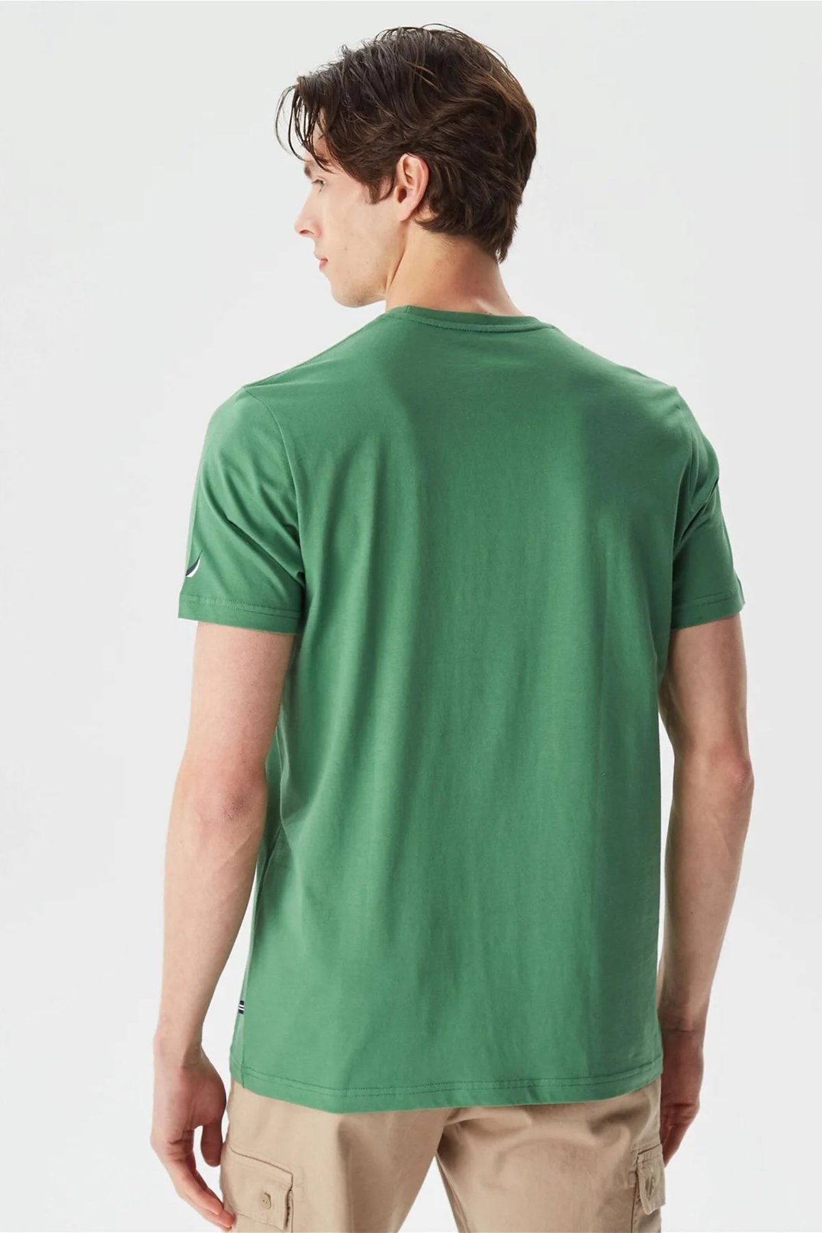 % 100 Pamuk Marka Baskılı Bisiklet Yaka Standart Fit Erkek T Shirt V35528T 3FY YEŞİL