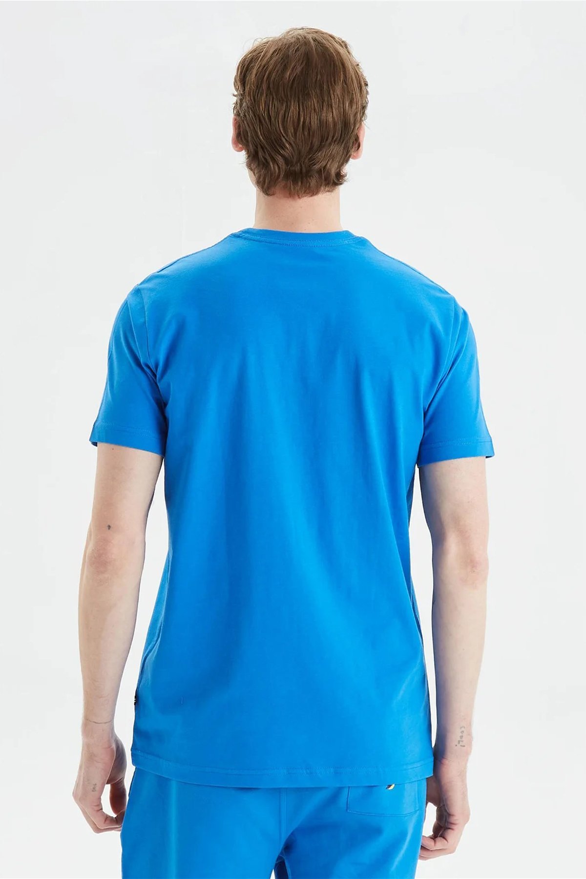 % 100 Pamuk Marka Baskılı Bisiklet Yaka Standart Fit Erkek T Shirt V35902T 4SJ SAKS