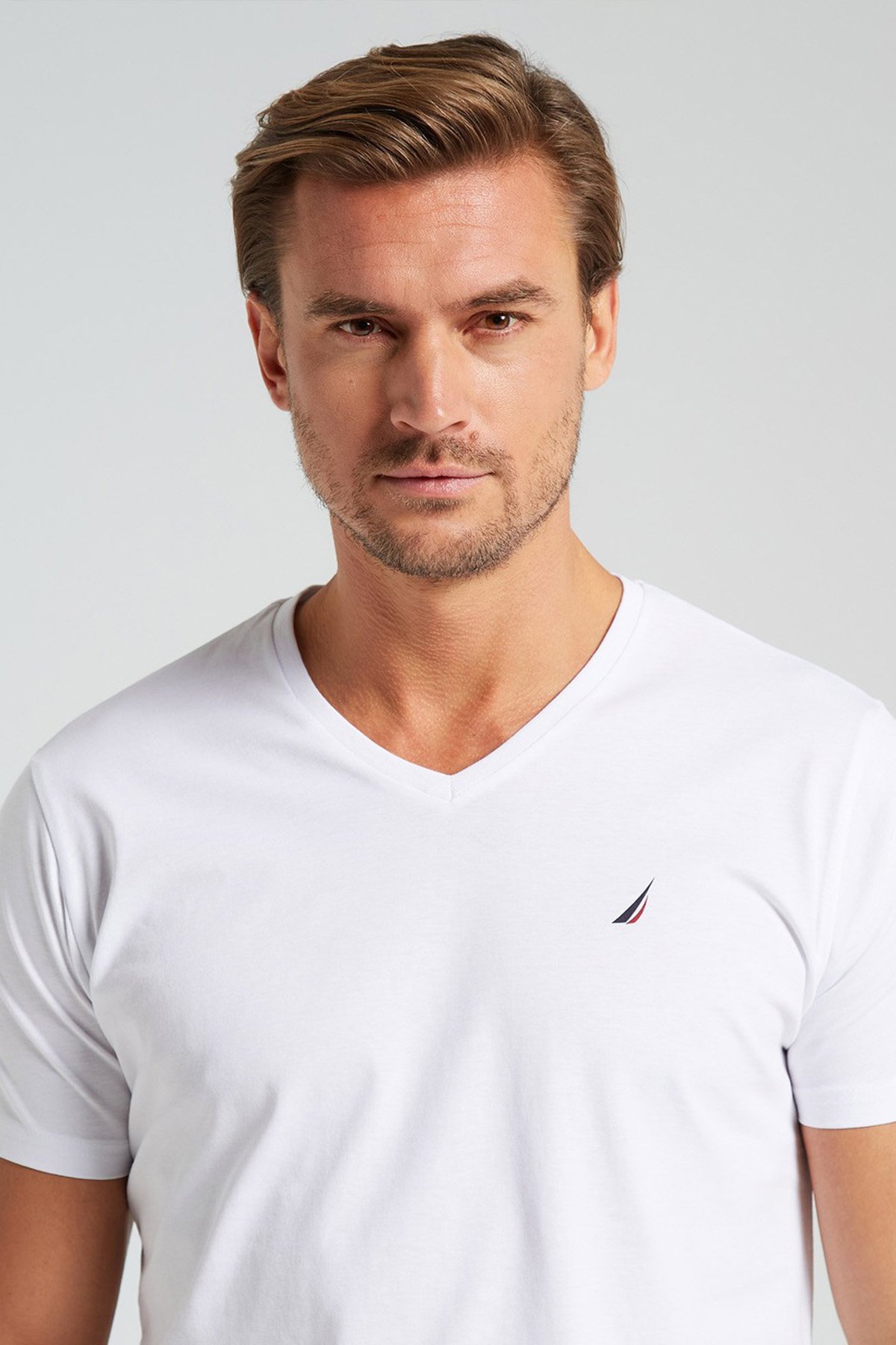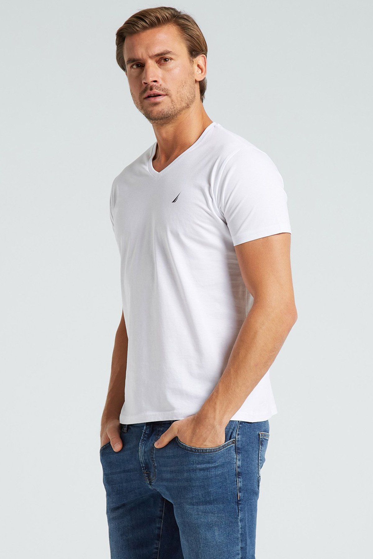 % 100 Pamuk Standart Fit V Yaka Erkek T Shirt V35525T 1BW BEYAZ