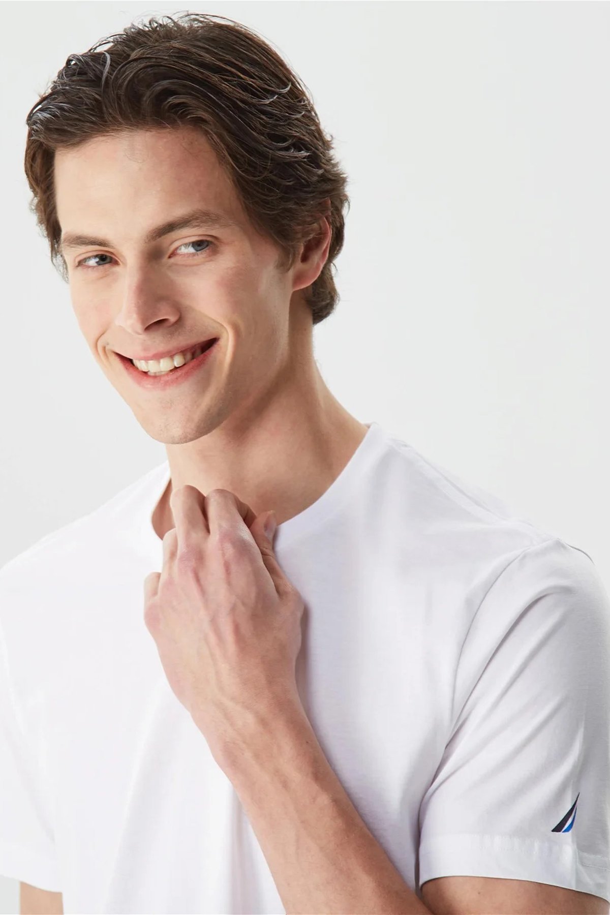 % 100 Pamuk Tasarım Baskılı Bisiklet Yaka Standart Fit Erkek T Shirt V35529T 1BW BEYAZ