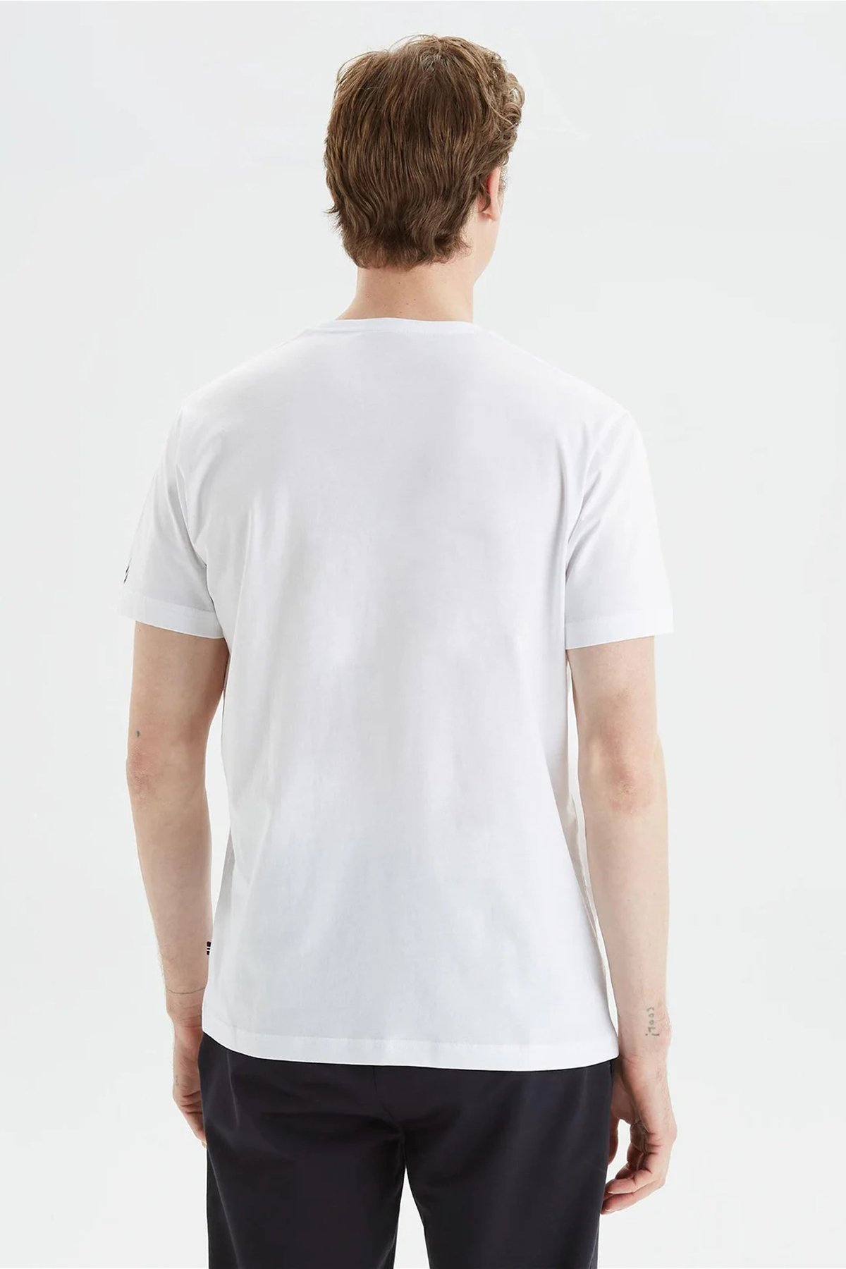 Baskılı % 100 Pamuk Standart Fit Bisiklet Yaka Erkek T Shirt V35474T 1BW BEYAZ