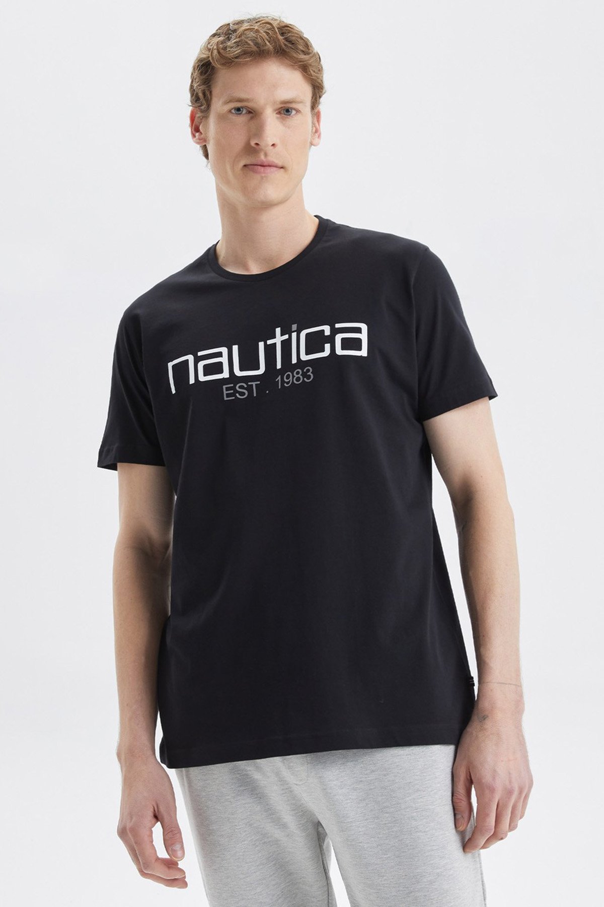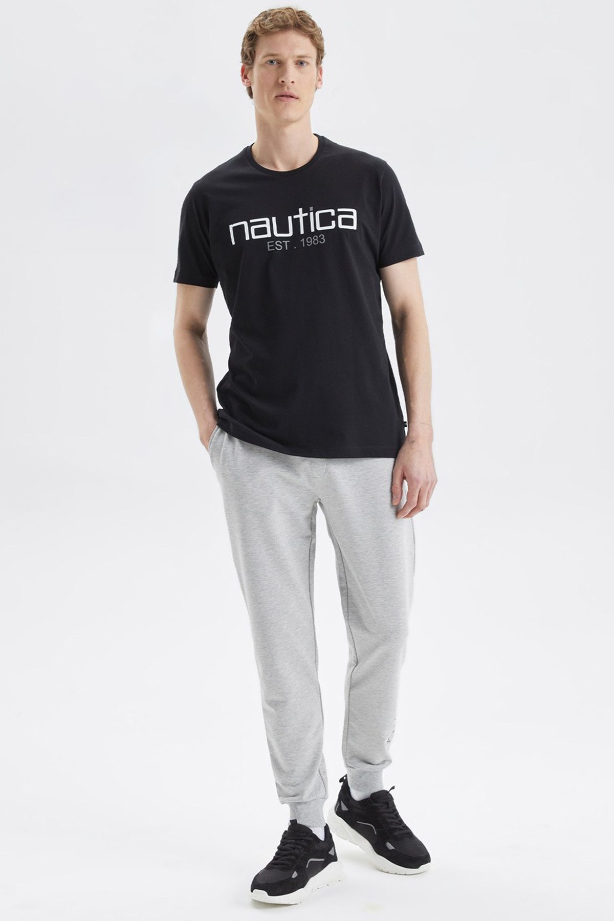 Baskılı % 100 Pamuk Standart Fit Bisiklet Yaka Erkek T Shirt V35527T 0TB SİYAH
