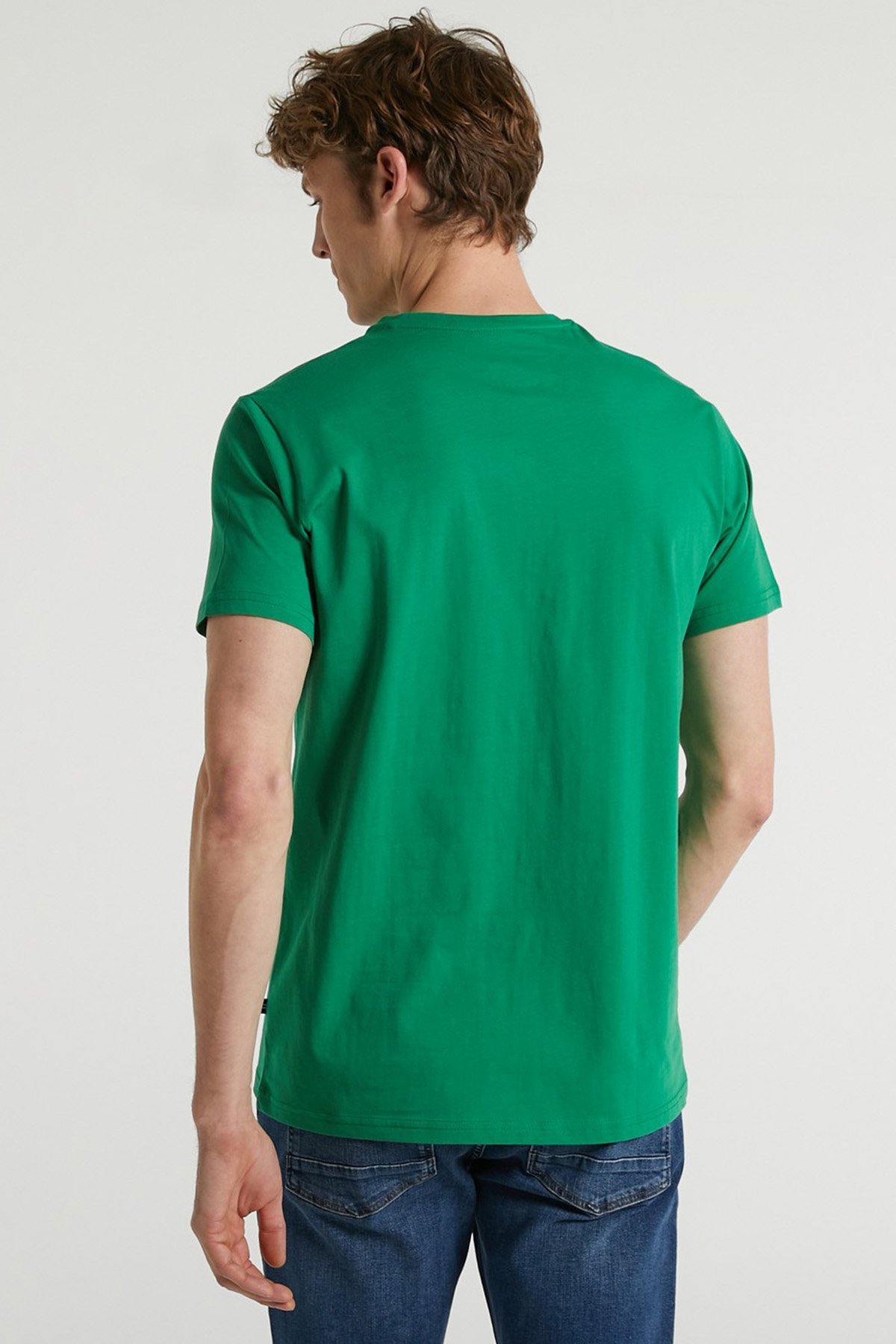 Baskılı % 100 Pamuk Standart Fit Bisiklet Yaka Erkek T Shirt V35527T 30T YEŞİL