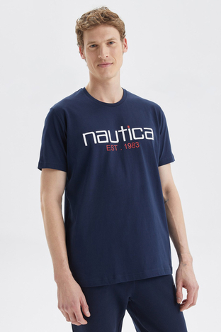 Baskılı % 100 Pamuk Standart Fit Bisiklet Yaka Erkek T Shirt V35527T 4NV LACİVERT