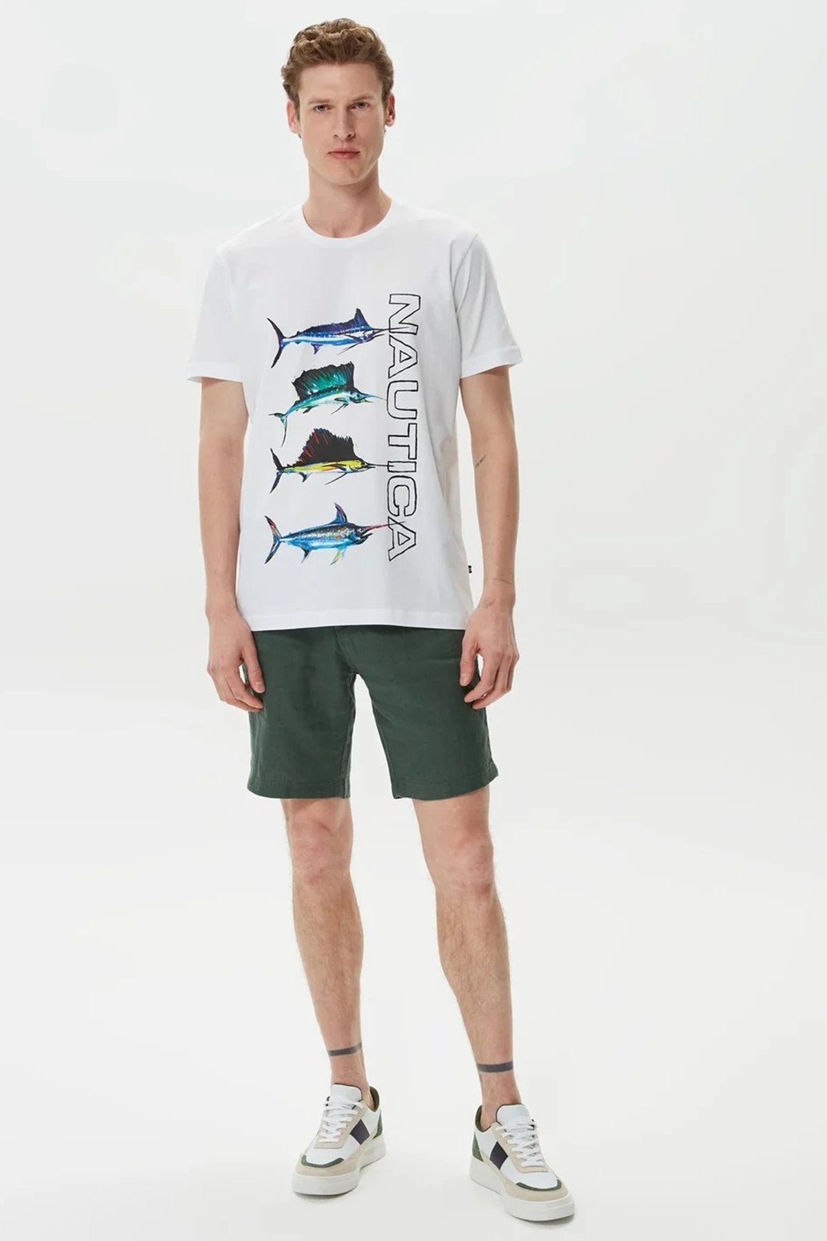 Baskılı % 100 Pamuklu Kısa Kollu Erkek T Shirt V35025T 1BW BEYAZ
