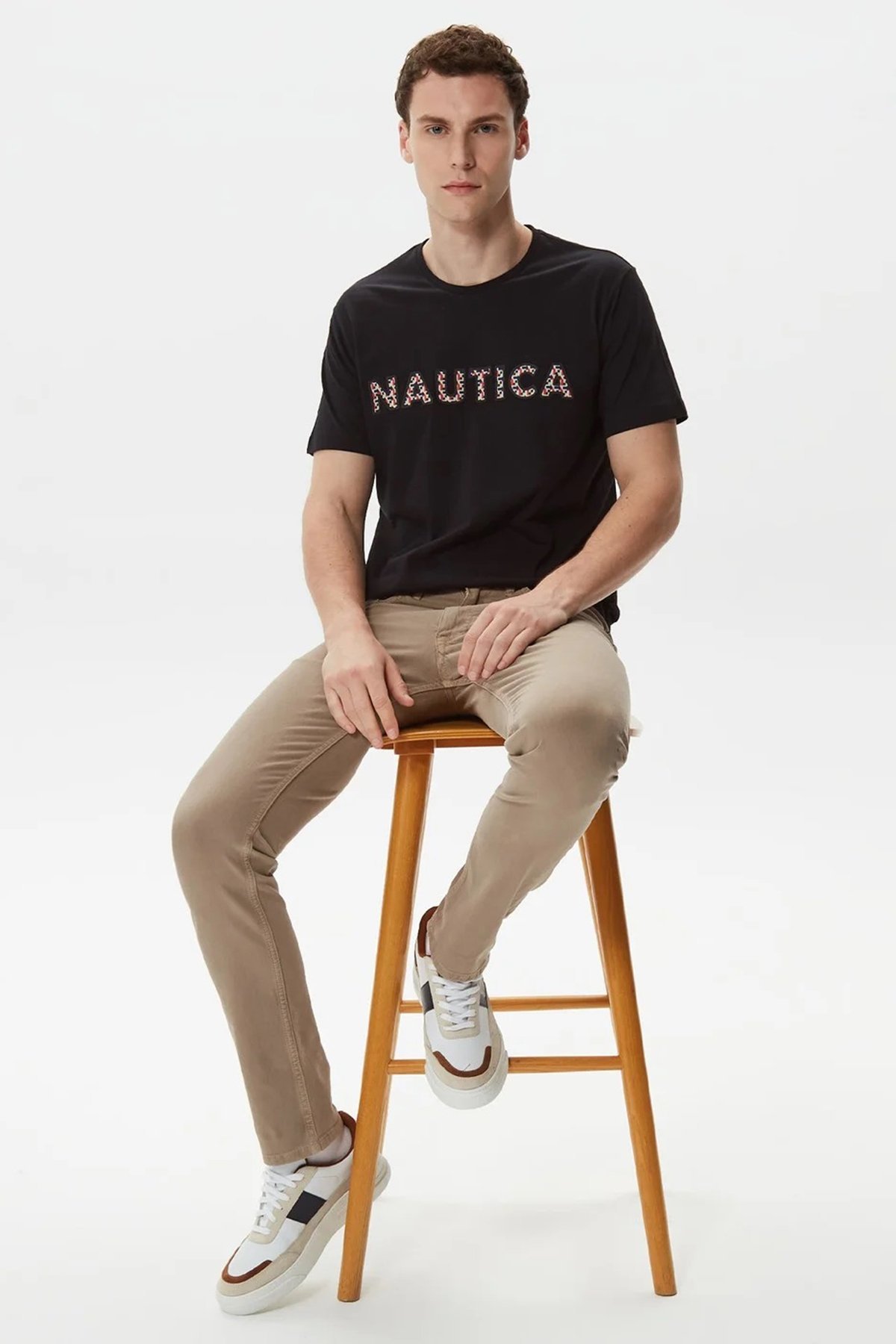 Baskılı % 100 Pamuklu Slim Fit Bisiklet Yaka Erkek T Shirt V35412T 0TB SİYAH