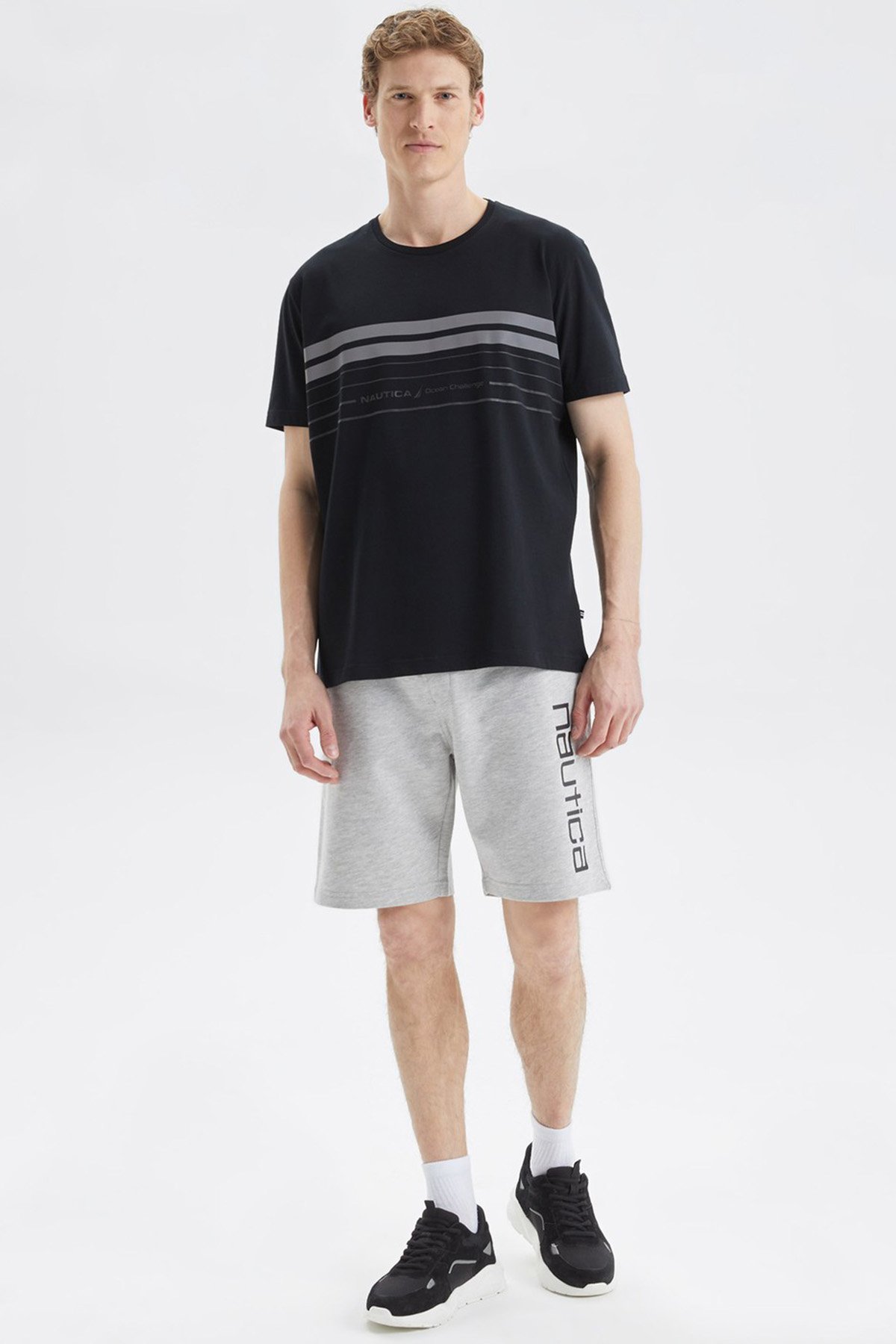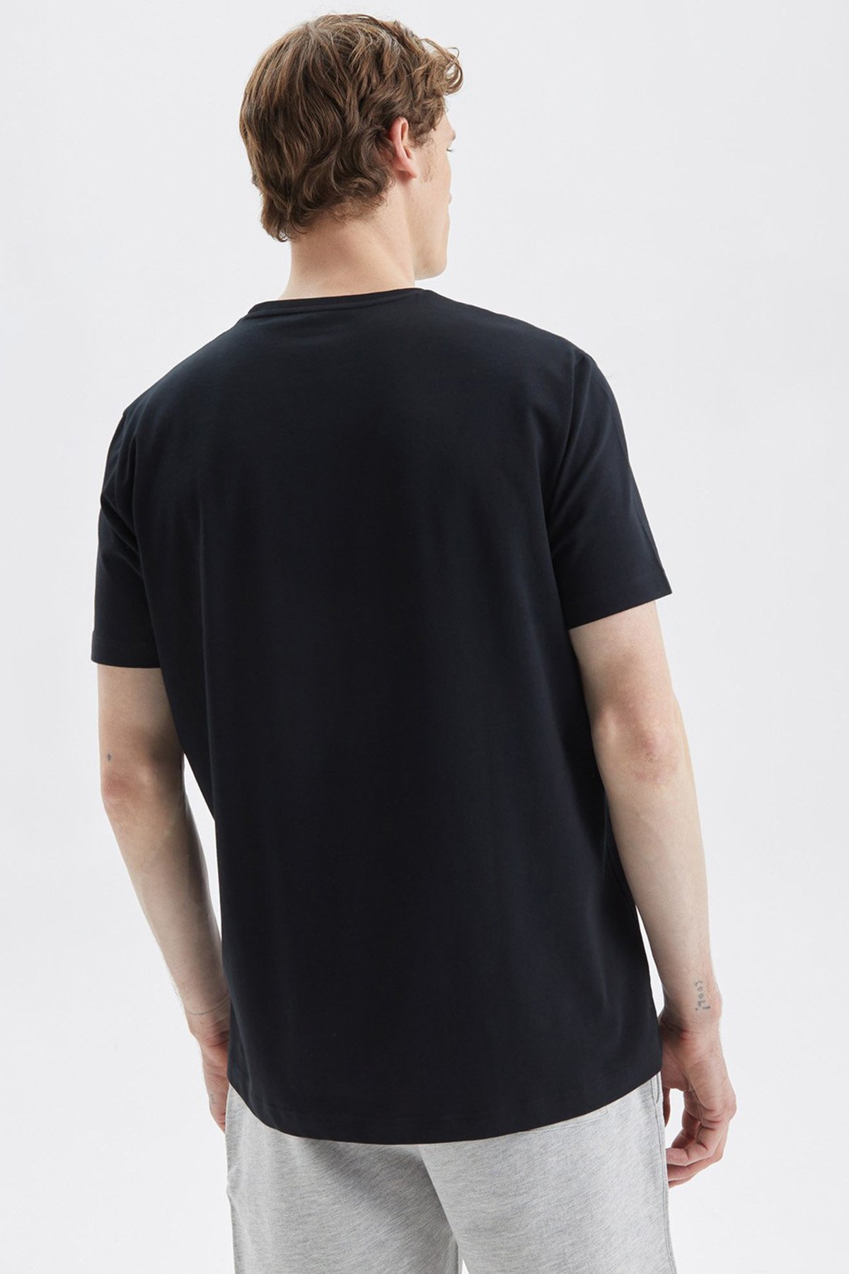 Pamuklu Baskılı Bisiklet Yaka Erkek T Shirt V35003T 0TB SİYAH