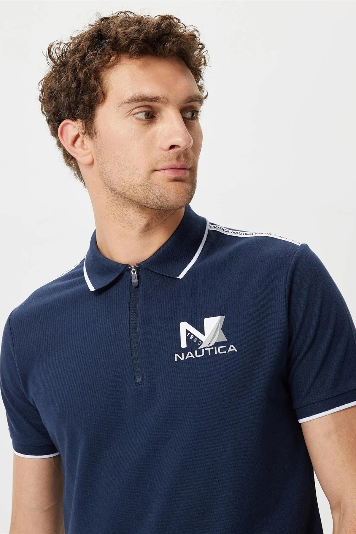Pamuklu Logo Baskılı Çizgi Detaylı Slim Fit Erkek Polo T Shirt K35427T 4NV LACİVERT