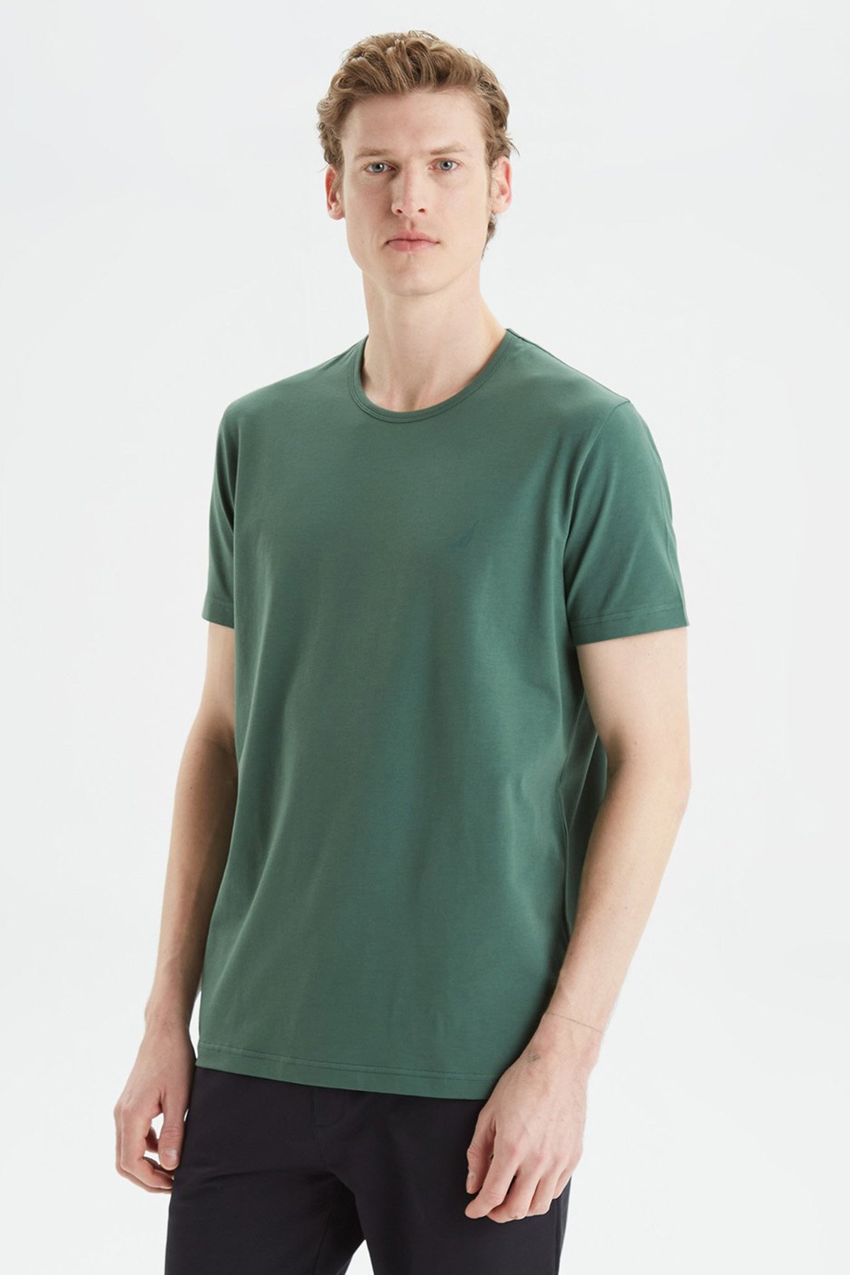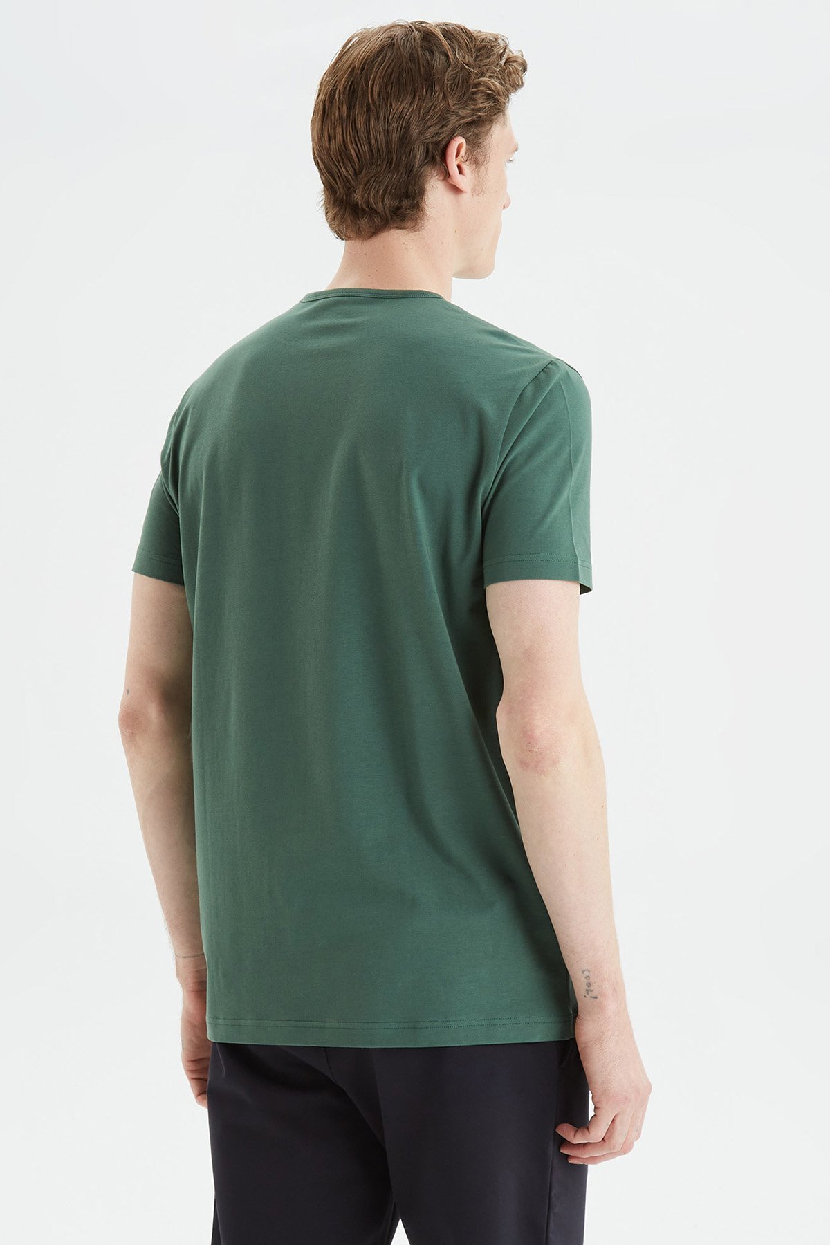 Pamuklu Regular Fit Bisiklet Yaka Erkek T Shirt V35009T 3FK KOYU YEŞİL
