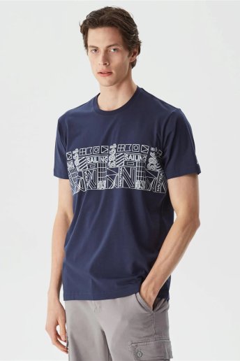 Pamuklu Tasarım Baskılı Bisiklet Yaka Standart Fit Erkek T Shirt V35541T 4NV LACİVERT