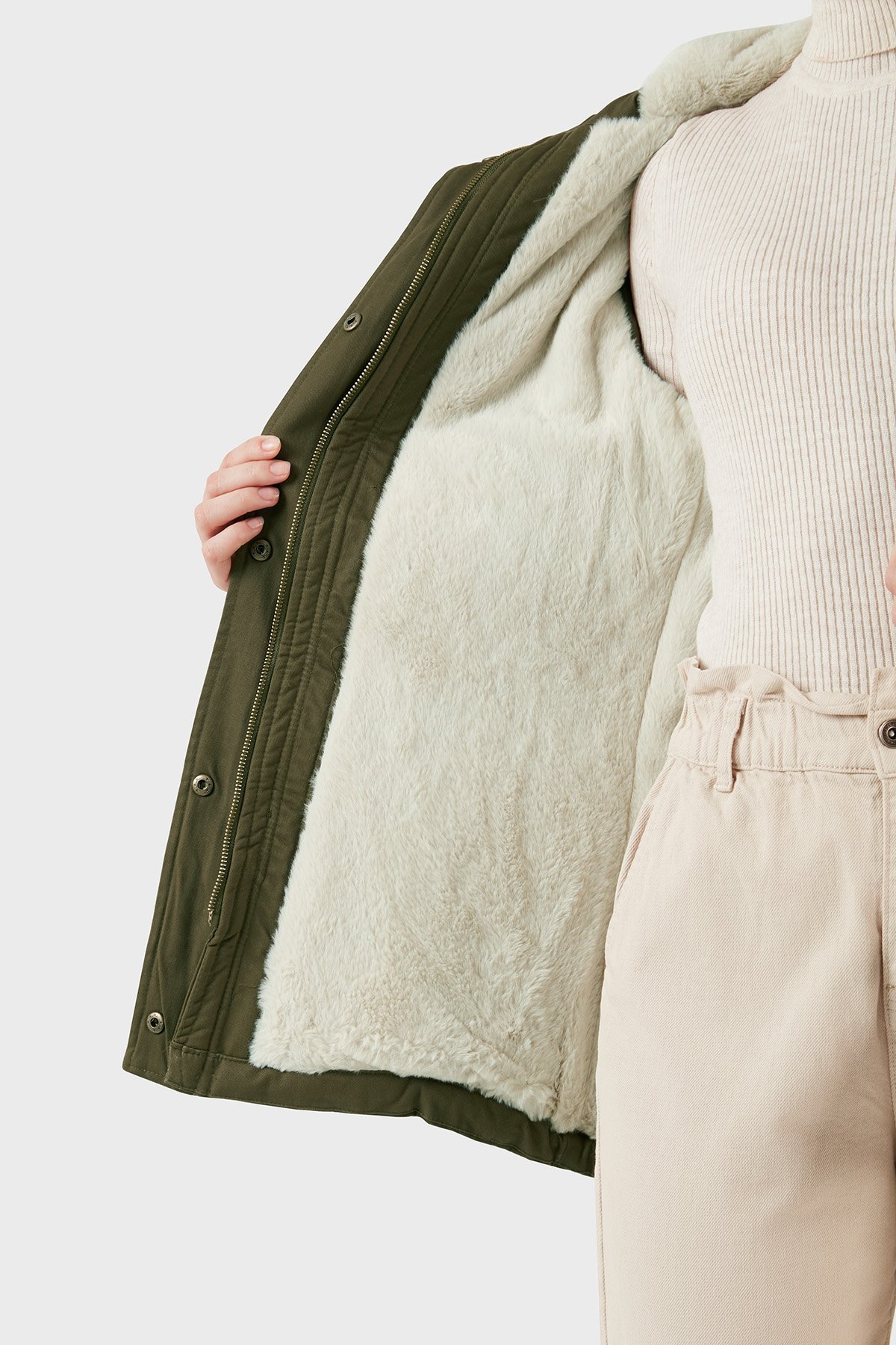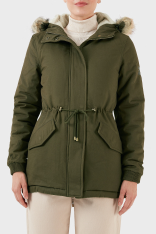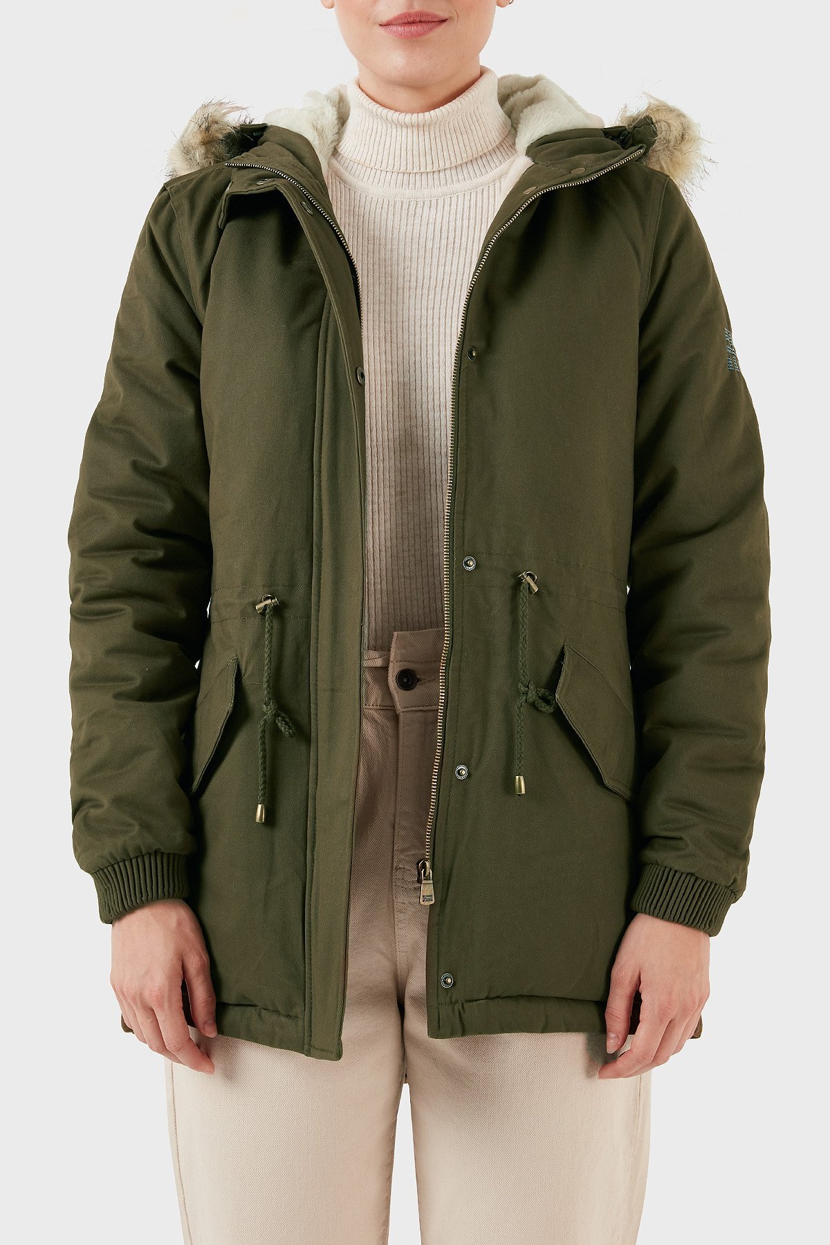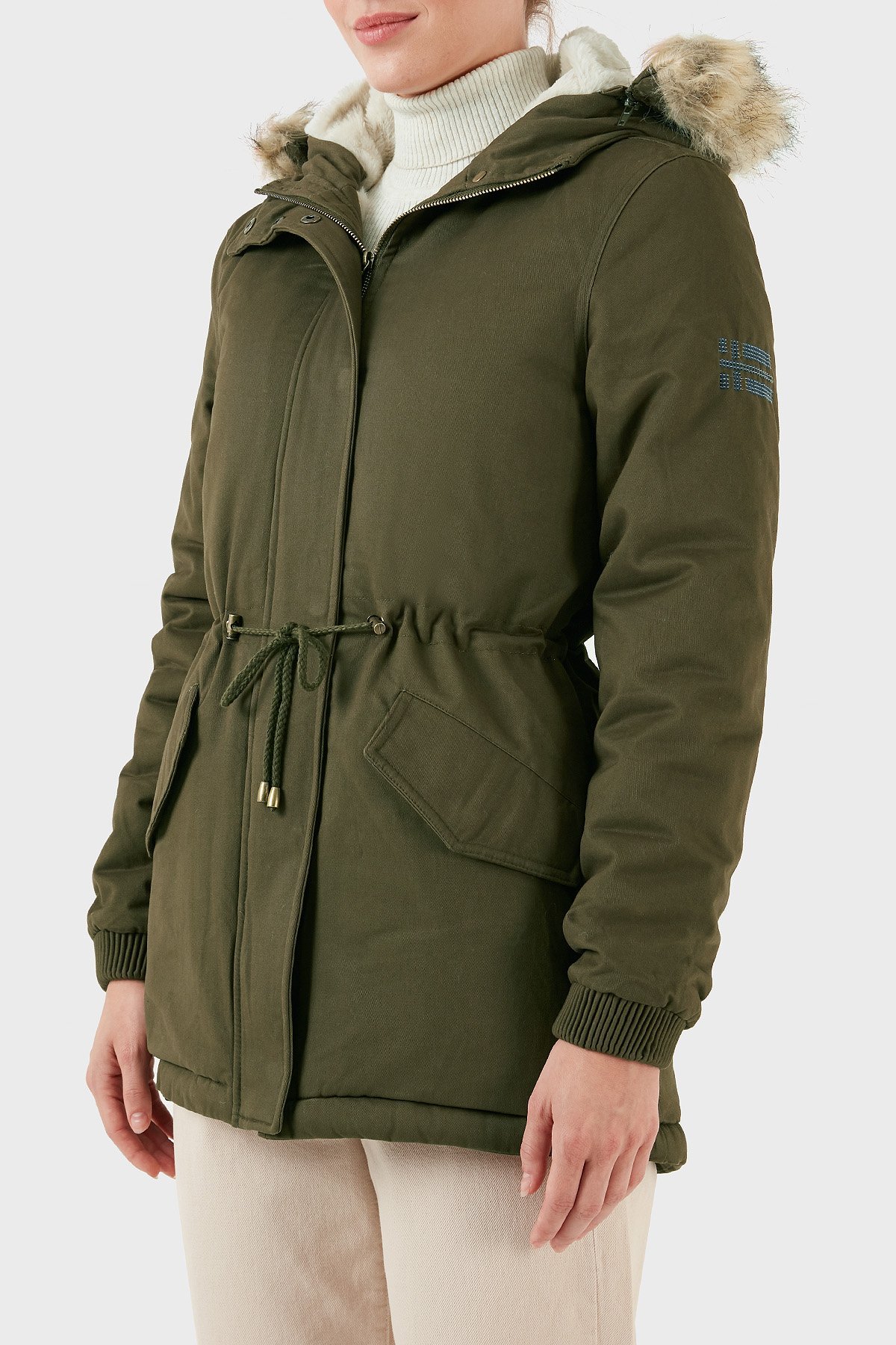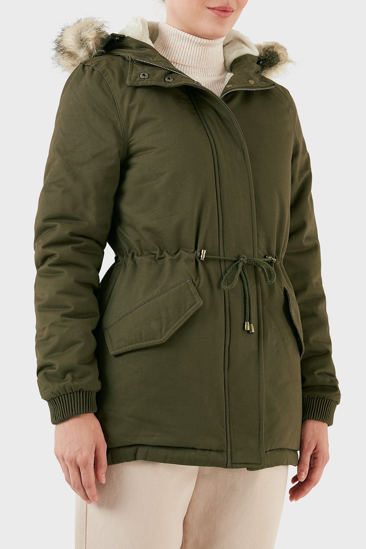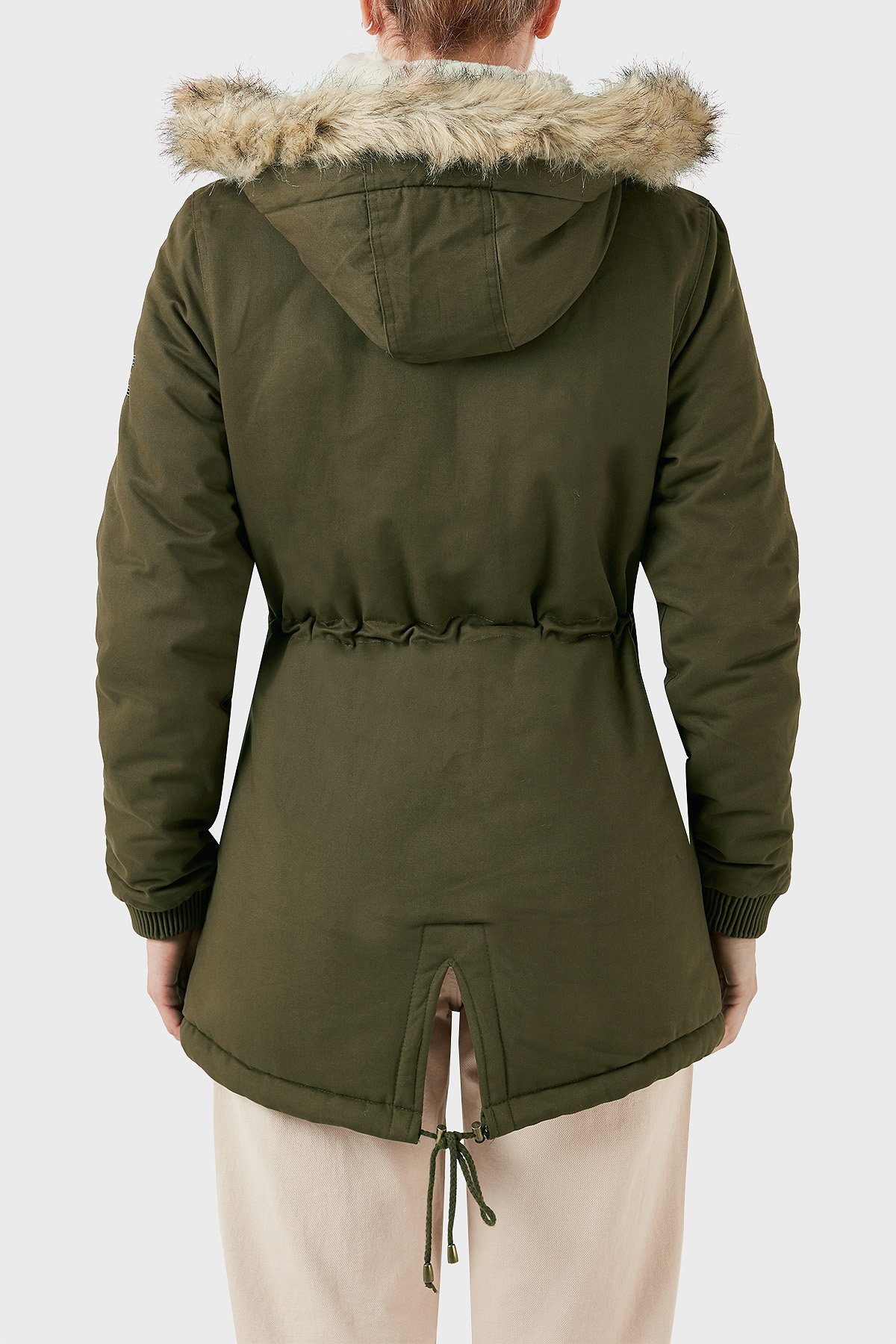 Isı Yalıtımlı Peluş Astarlı Çıkarılabilir Suni Tüylü Kapüşonlu Bayan Parka AMPURIA HAKİ