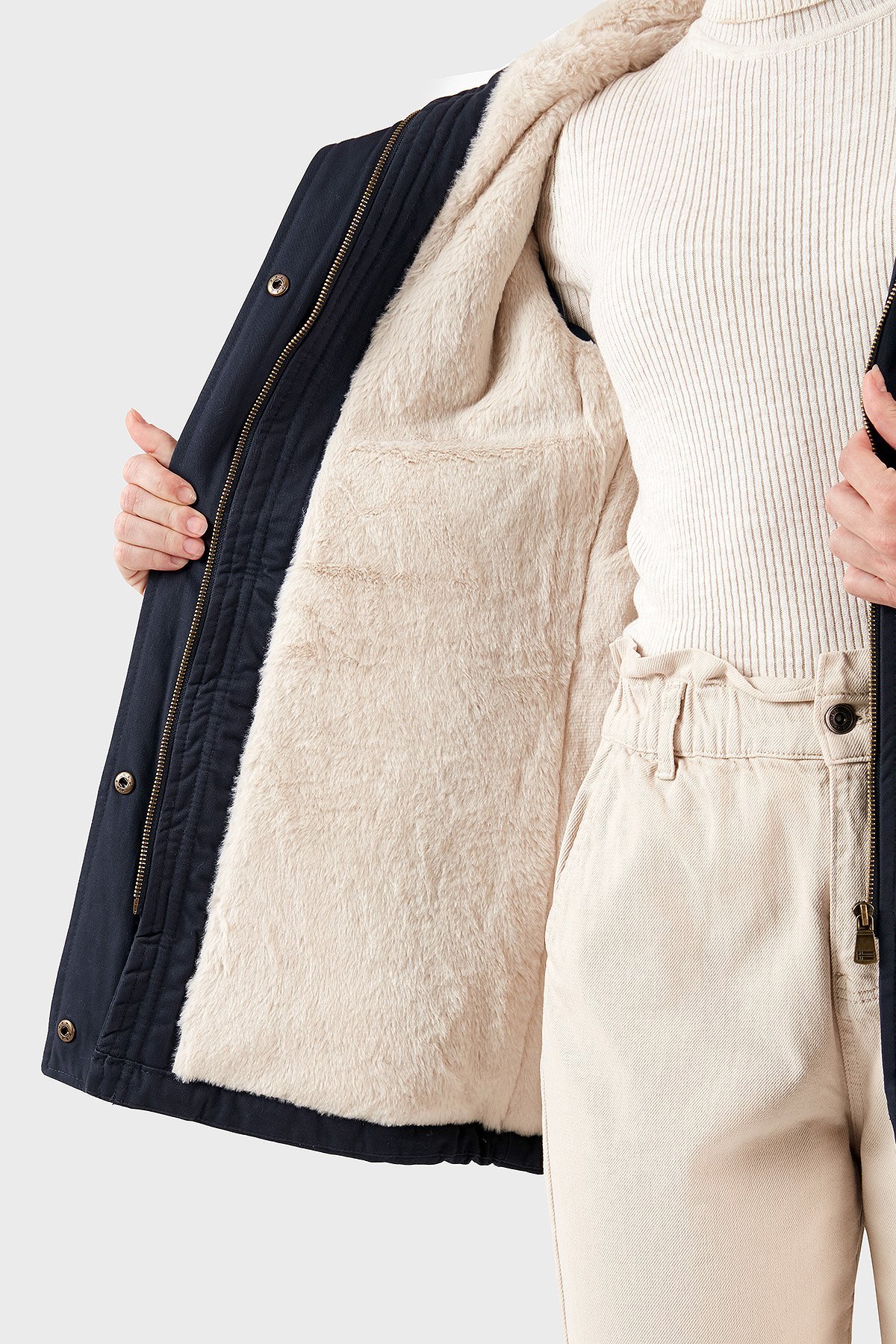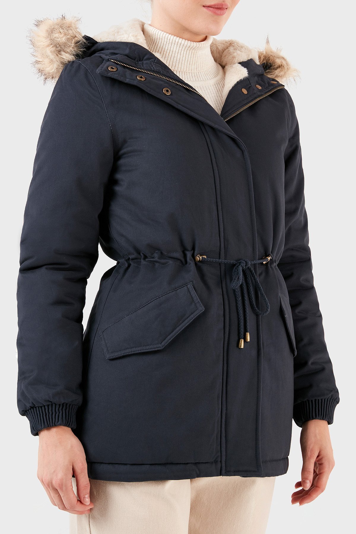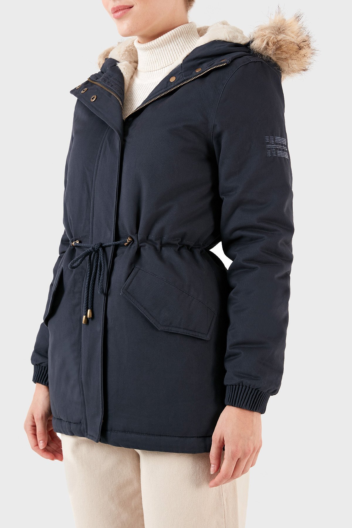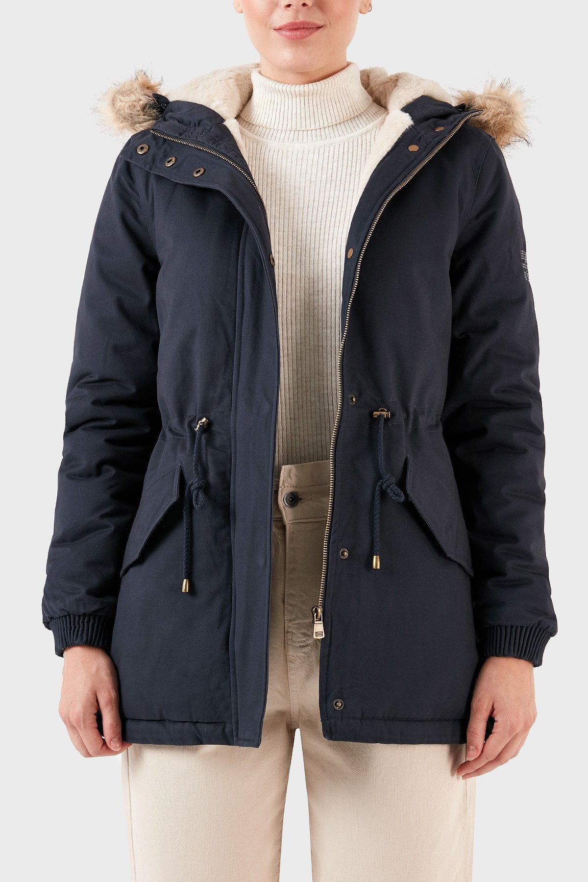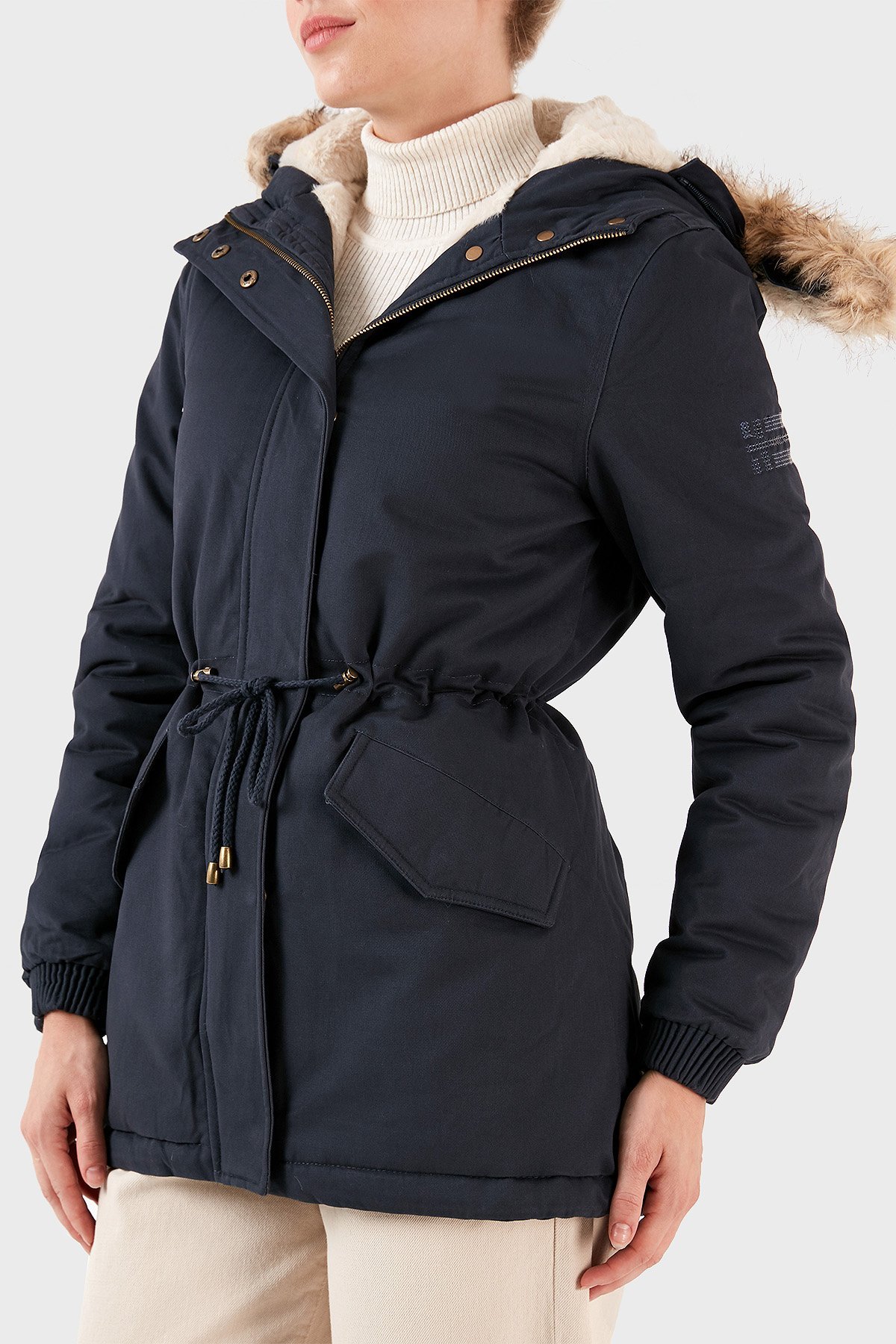Isı Yalıtımlı Peluş Astarlı Çıkarılabilir Suni Tüylü Kapüşonlu Bayan Parka AMPURIA LACİVERT