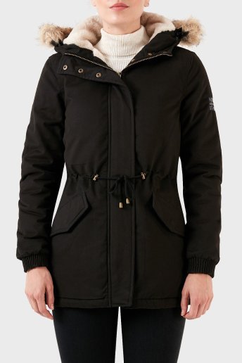 Isı Yalıtımlı Peluş Astarlı Çıkarılabilir Suni Tüylü Kapüşonlu Bayan Parka AMPURIA SİYAH