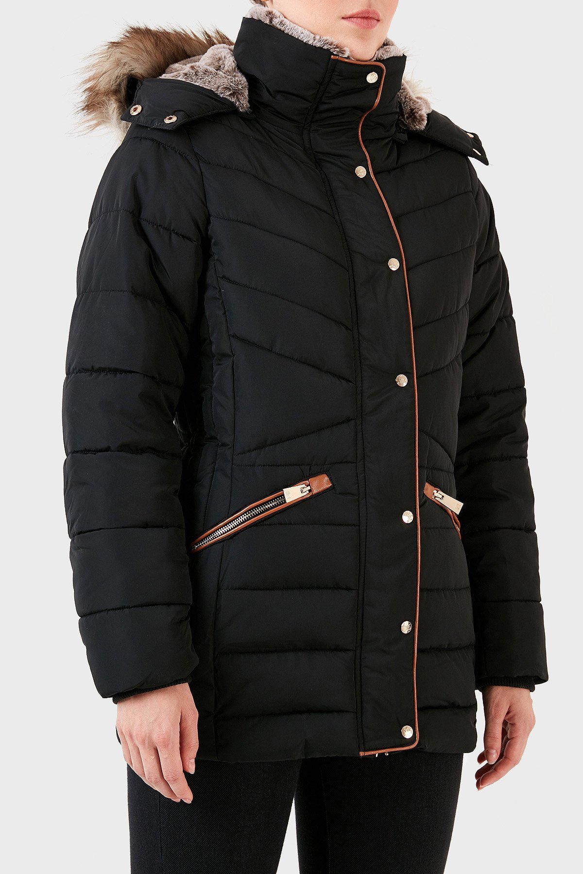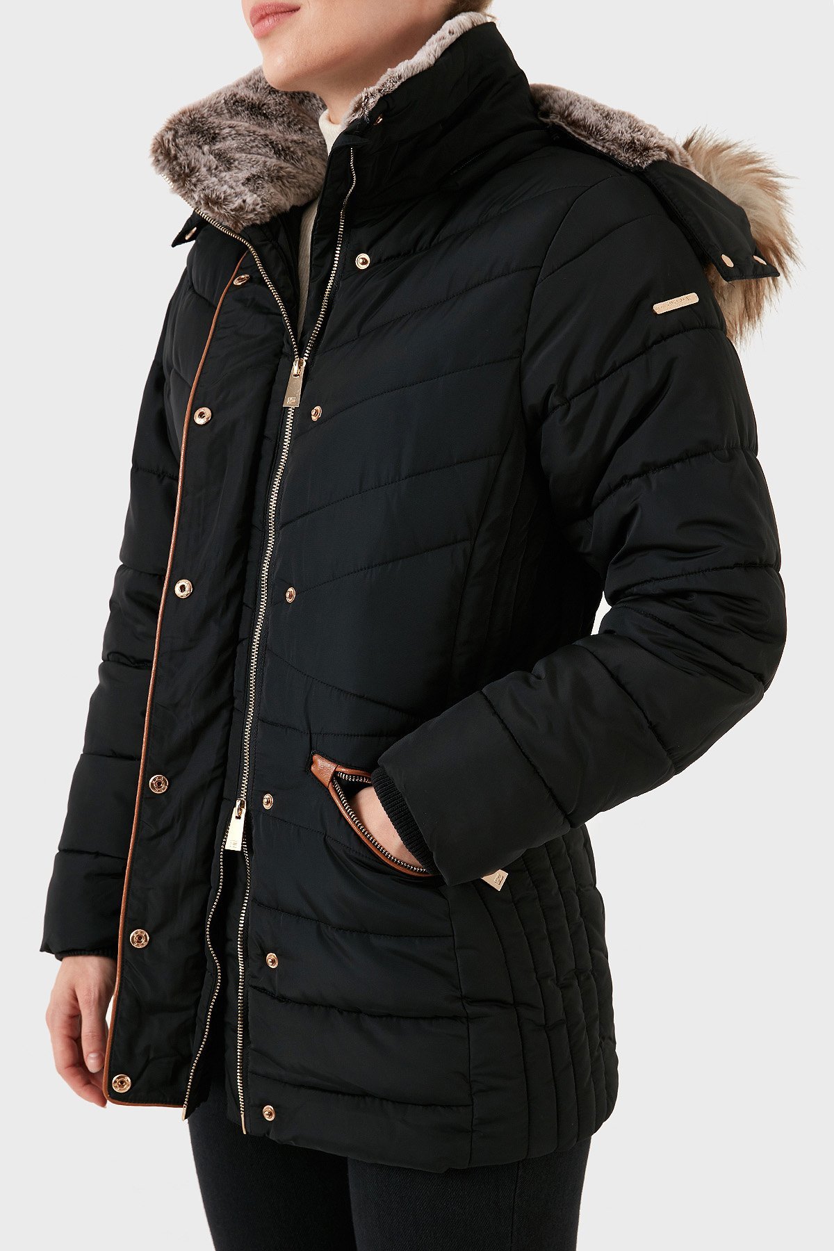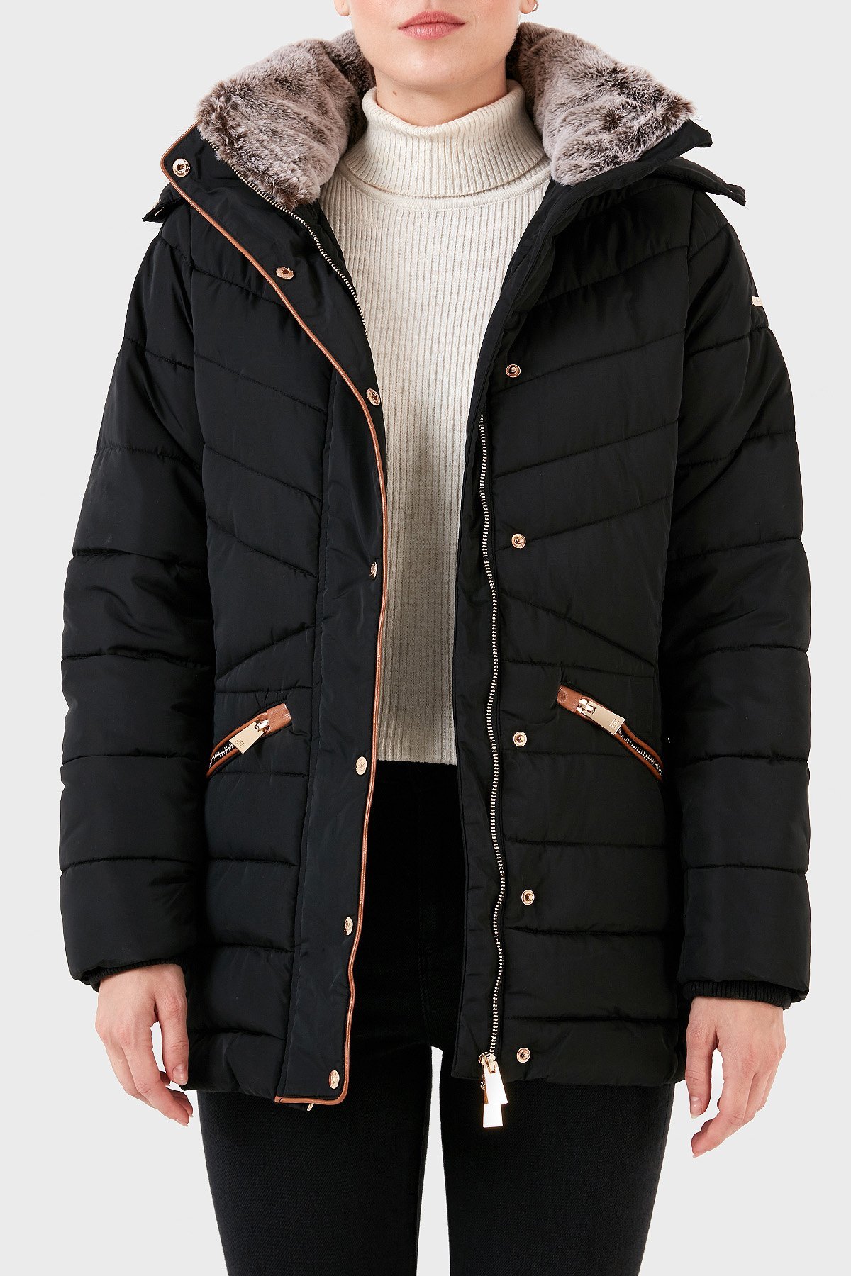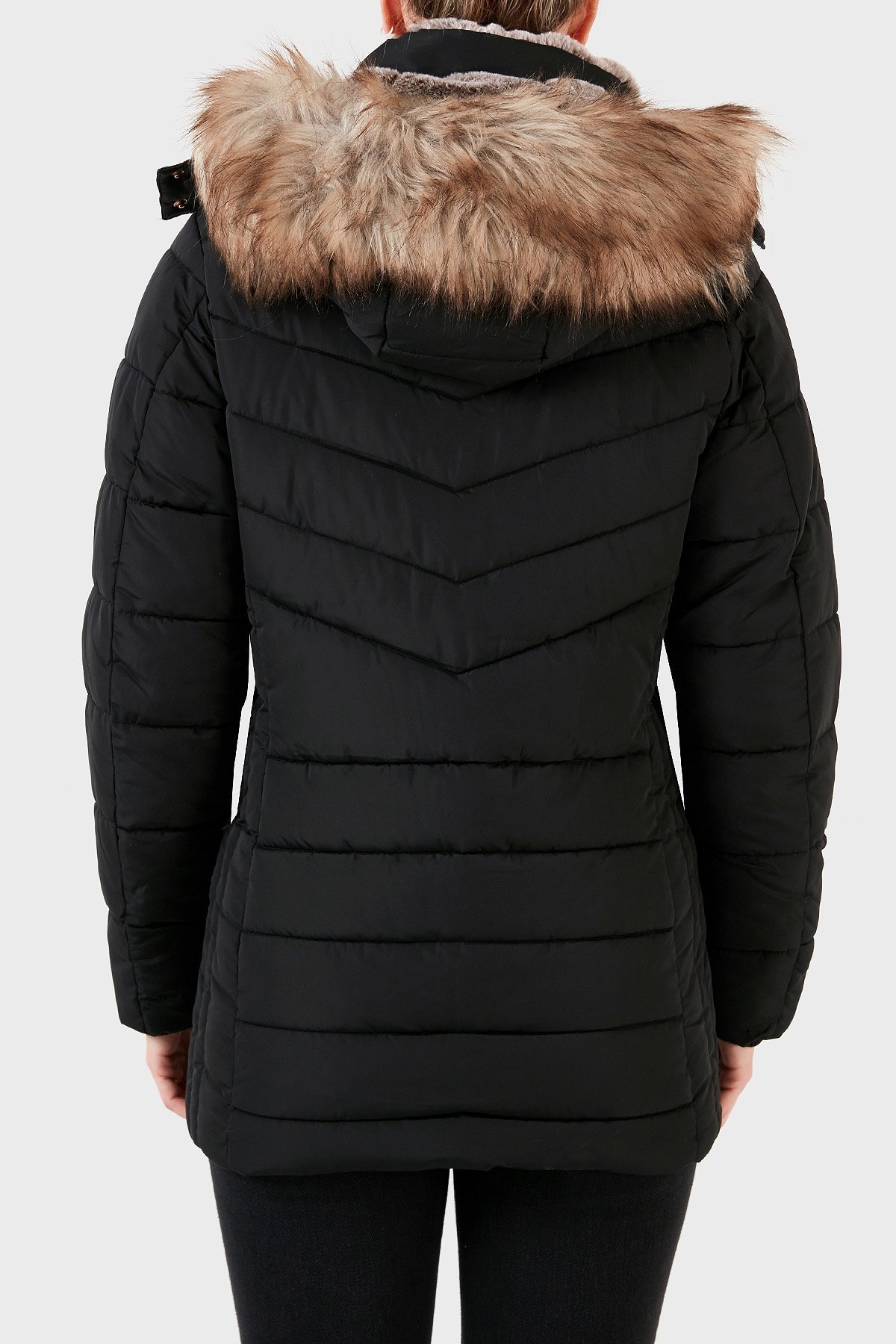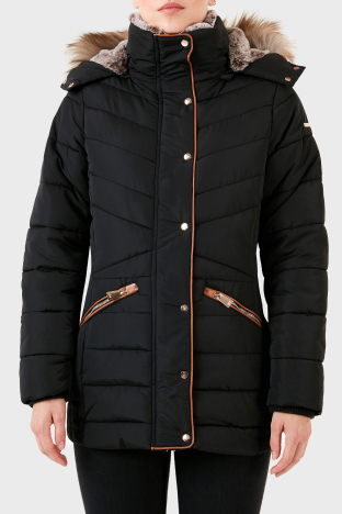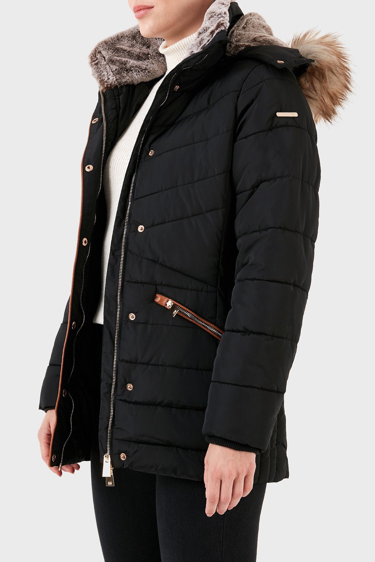 Isı Yalıtımlı Suni Tüylü Çıkarılabilir Kapüşonlu Bayan Parka AJUJU SİYAH