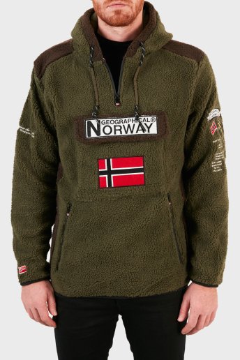 Kapüşonlu Yarım Fermuarlı Outdoor Polar Erkek Sweat GYMCLASSSHERPA HAKİ