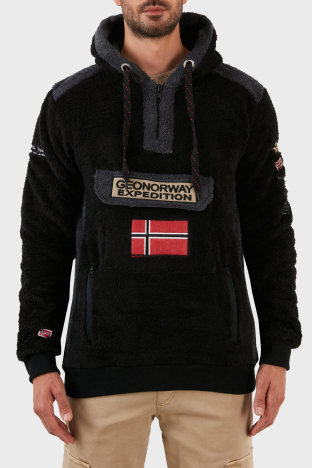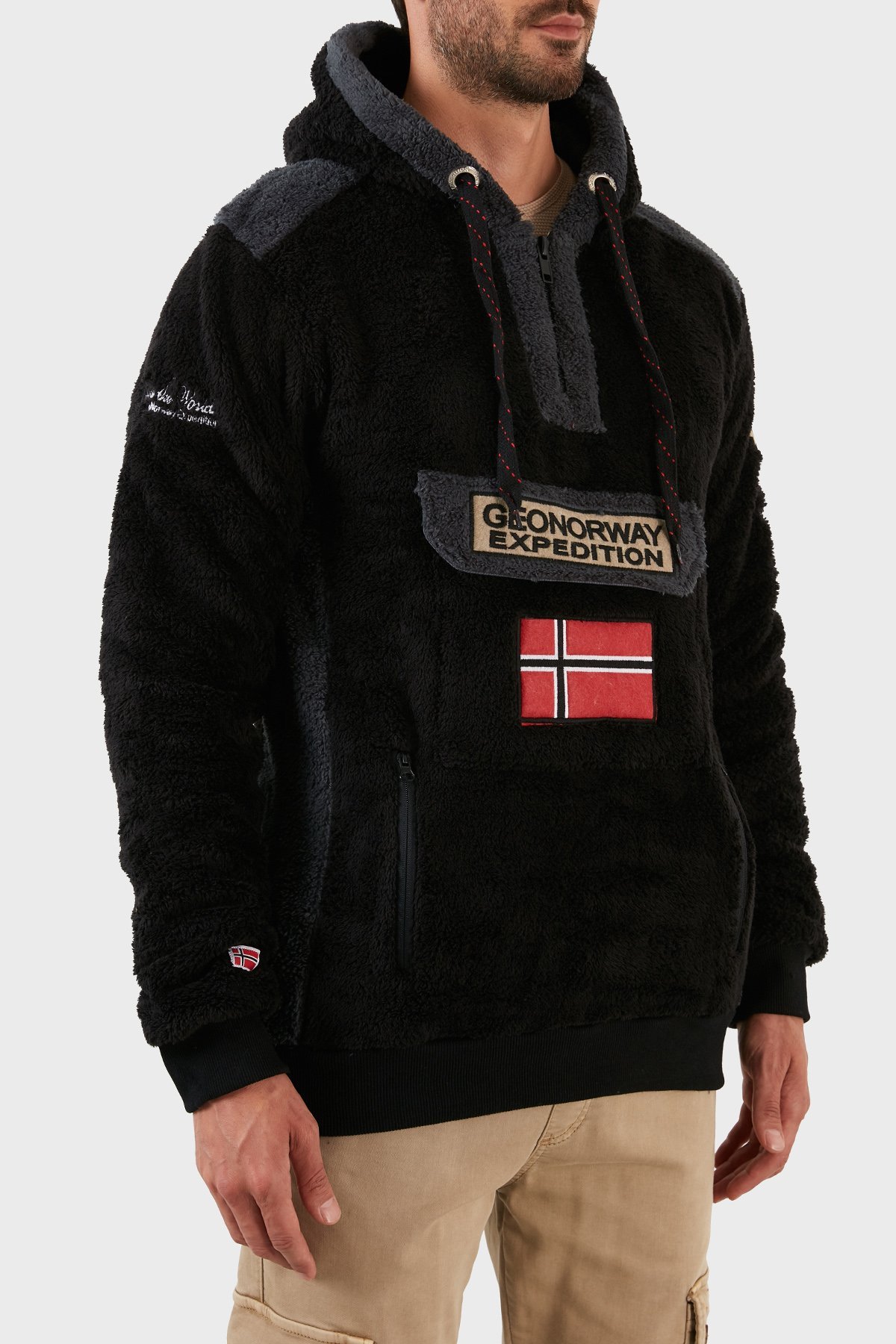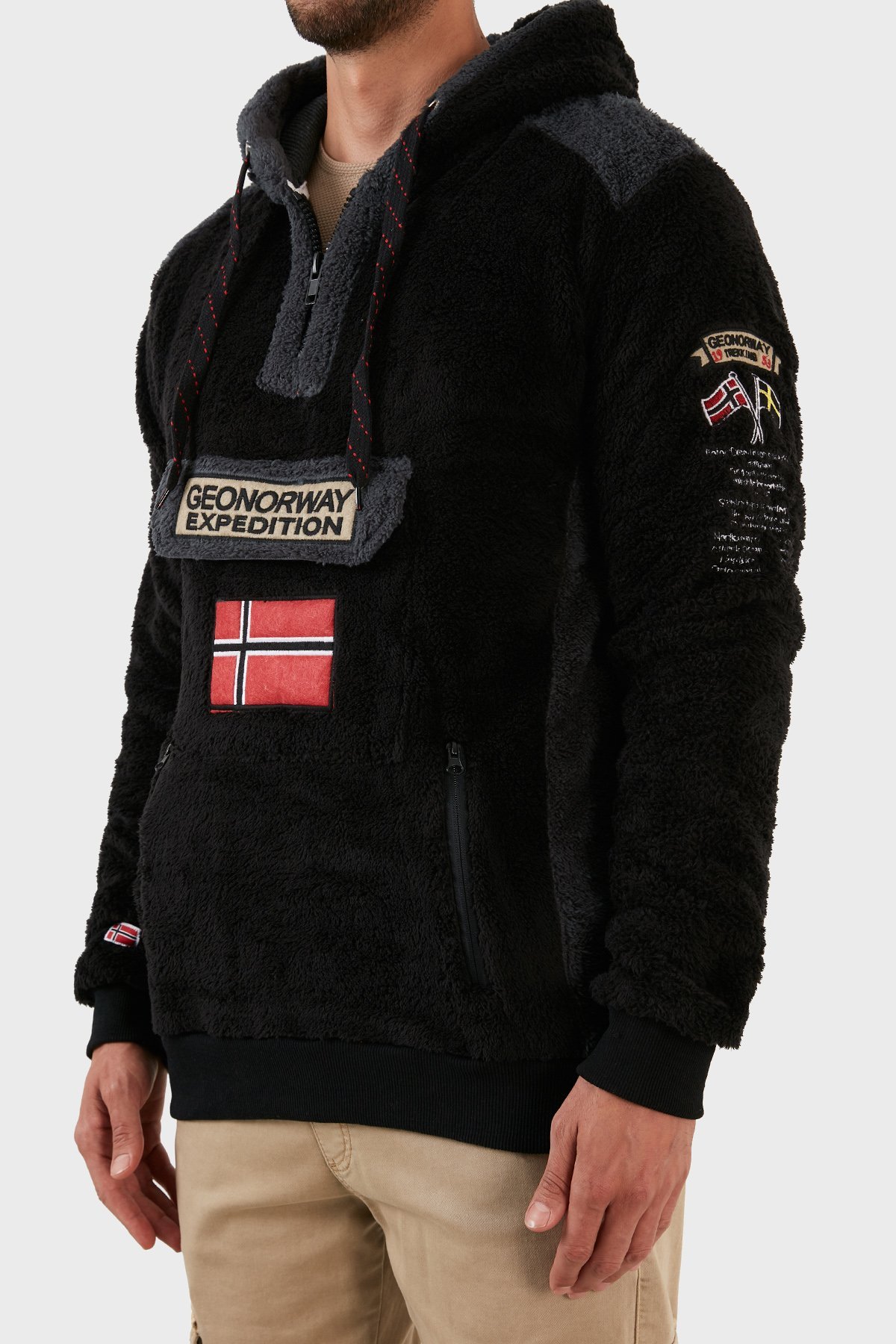 Pamuklu Yumuşak Dokulu Soğuğa Dayanıklı Kapüşonlu Erkek Polar GYMCLASS SHERCOE SİYAH