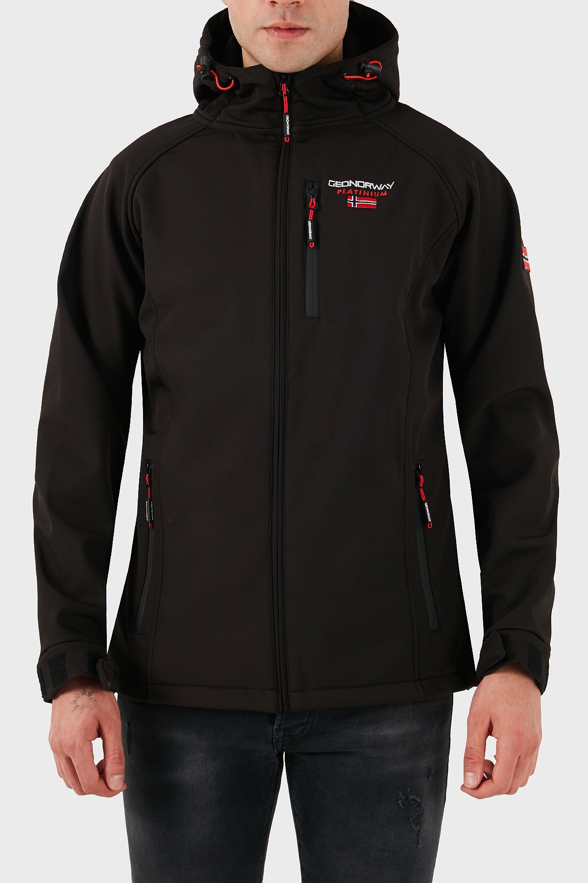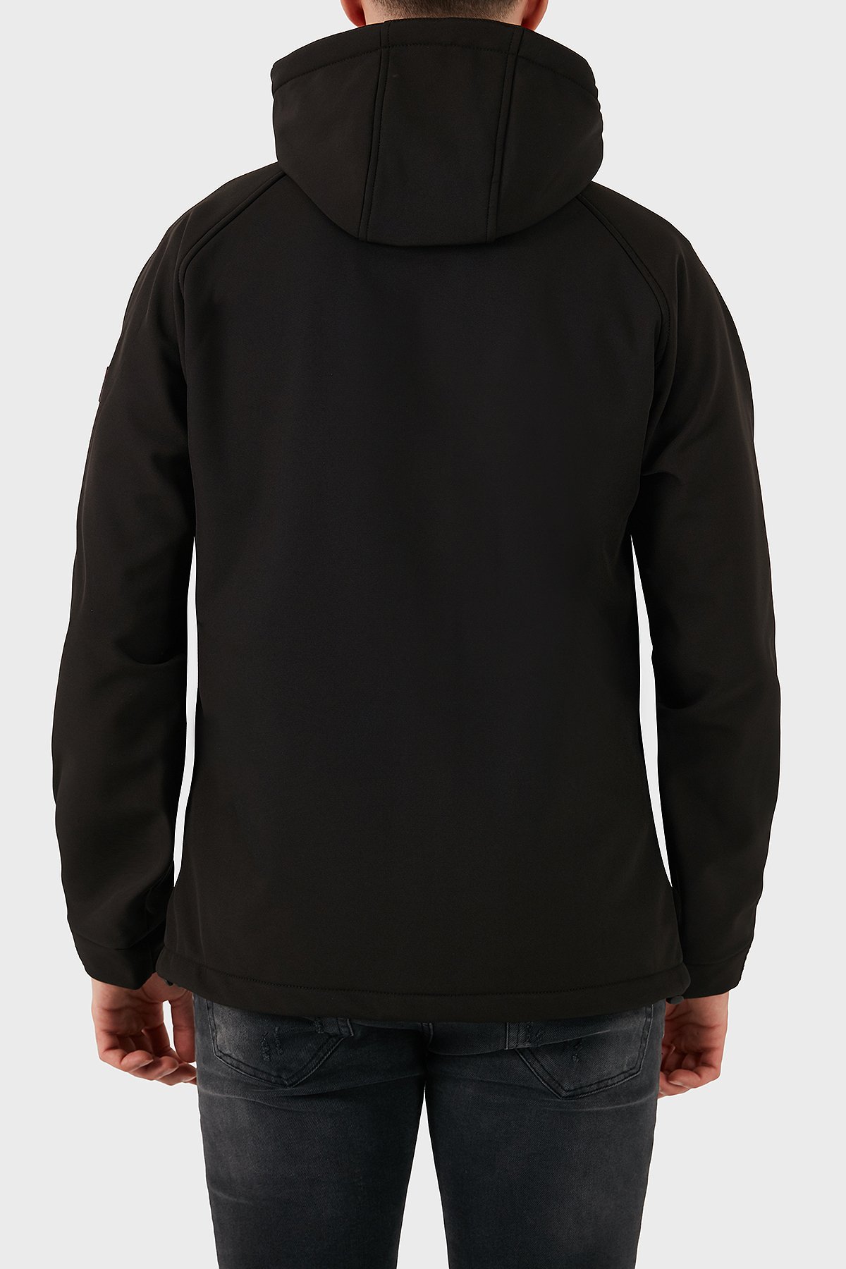 Regular Fit Logolu Dik Yaka Kapüşonlu Erkek Mont TAKITO SİYAH
