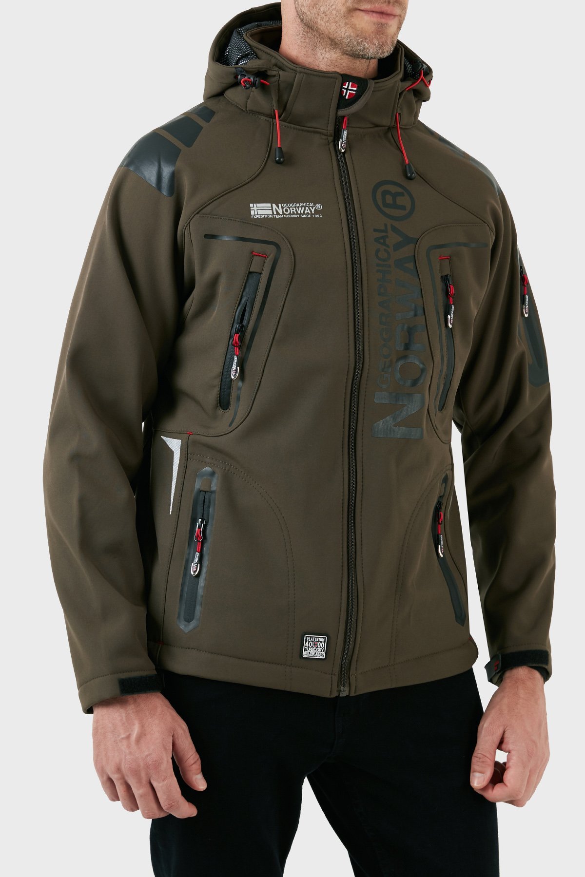 Su Geçirmez 4000 mm Kapüşonlu Outdoor Erkek Mont TECHNO HAKİ-SİYAH