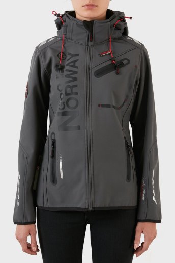 Su Geçirmez 5000 mm Softshell Çıkarılabilir Kapüşonlu Bayan Mont REINE KOYU GRİ-SİYAH