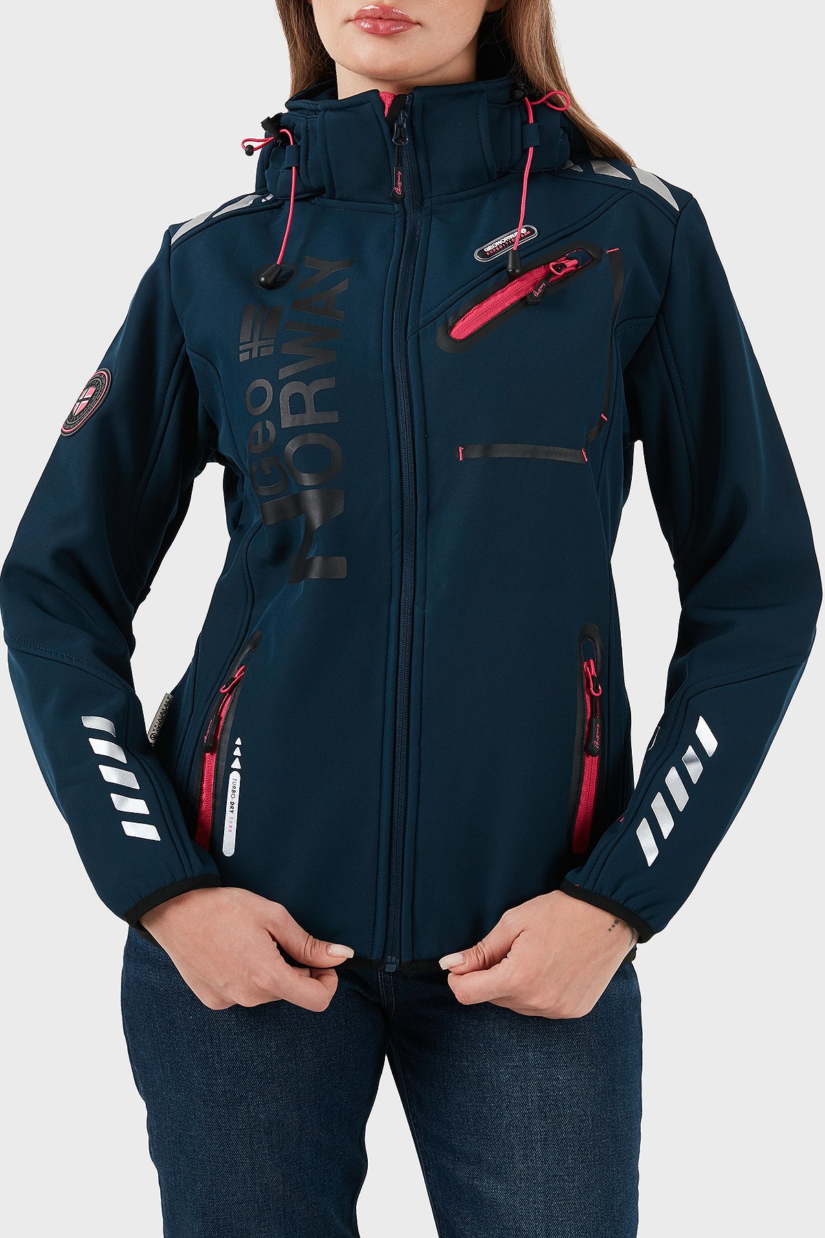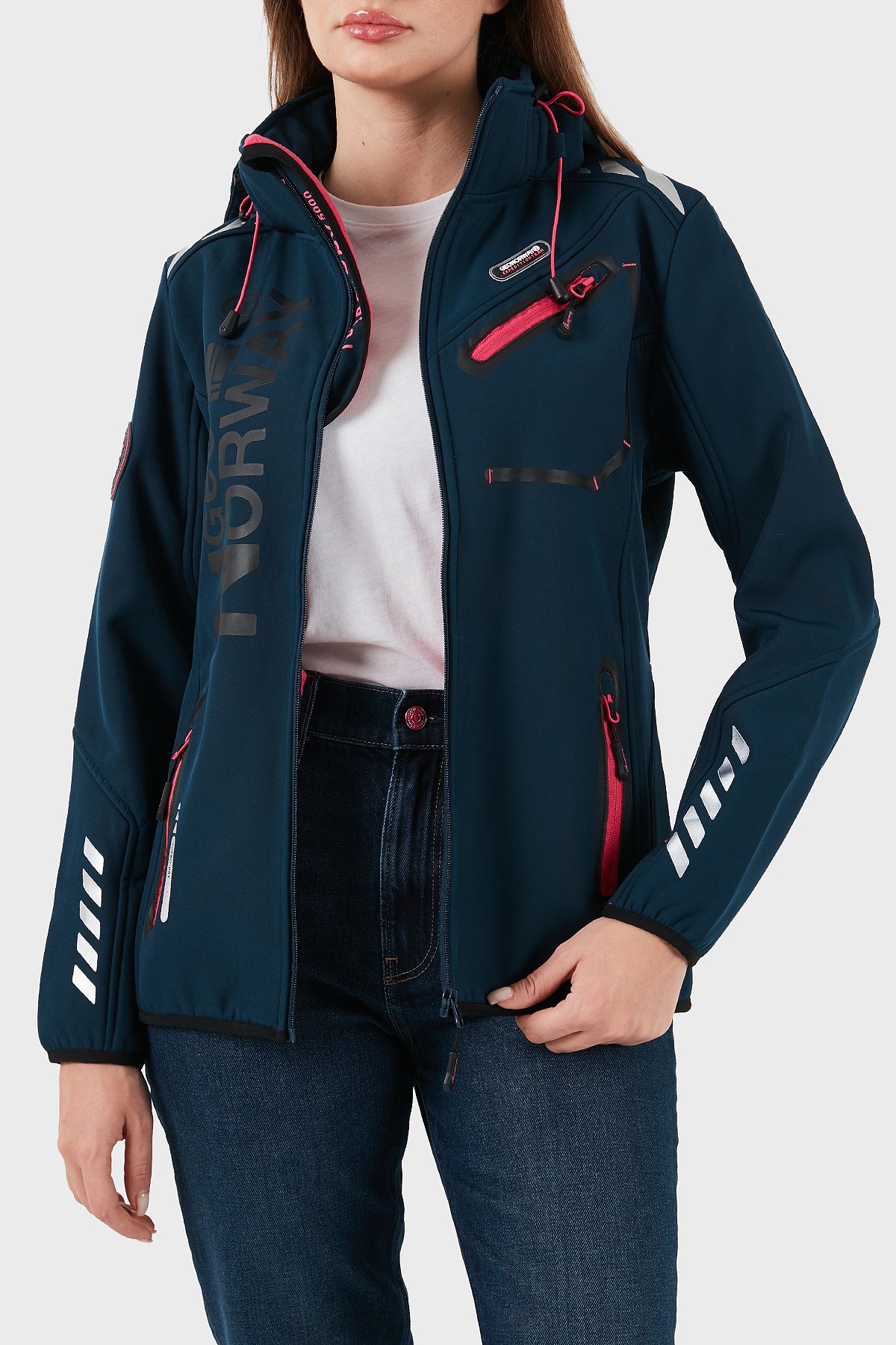 Su Geçirmez 5000 mm Softshell Çıkarılabilir Kapüşonlu Bayan Mont REINE LACİVERT-PEMBE
