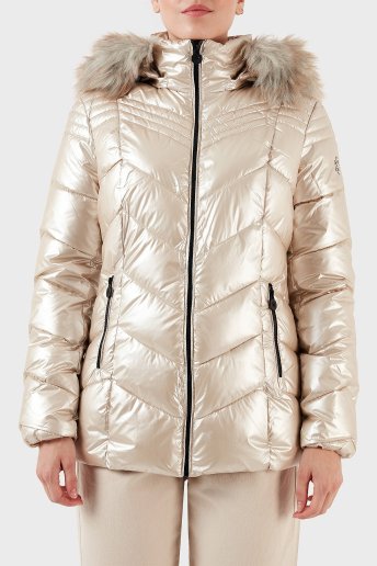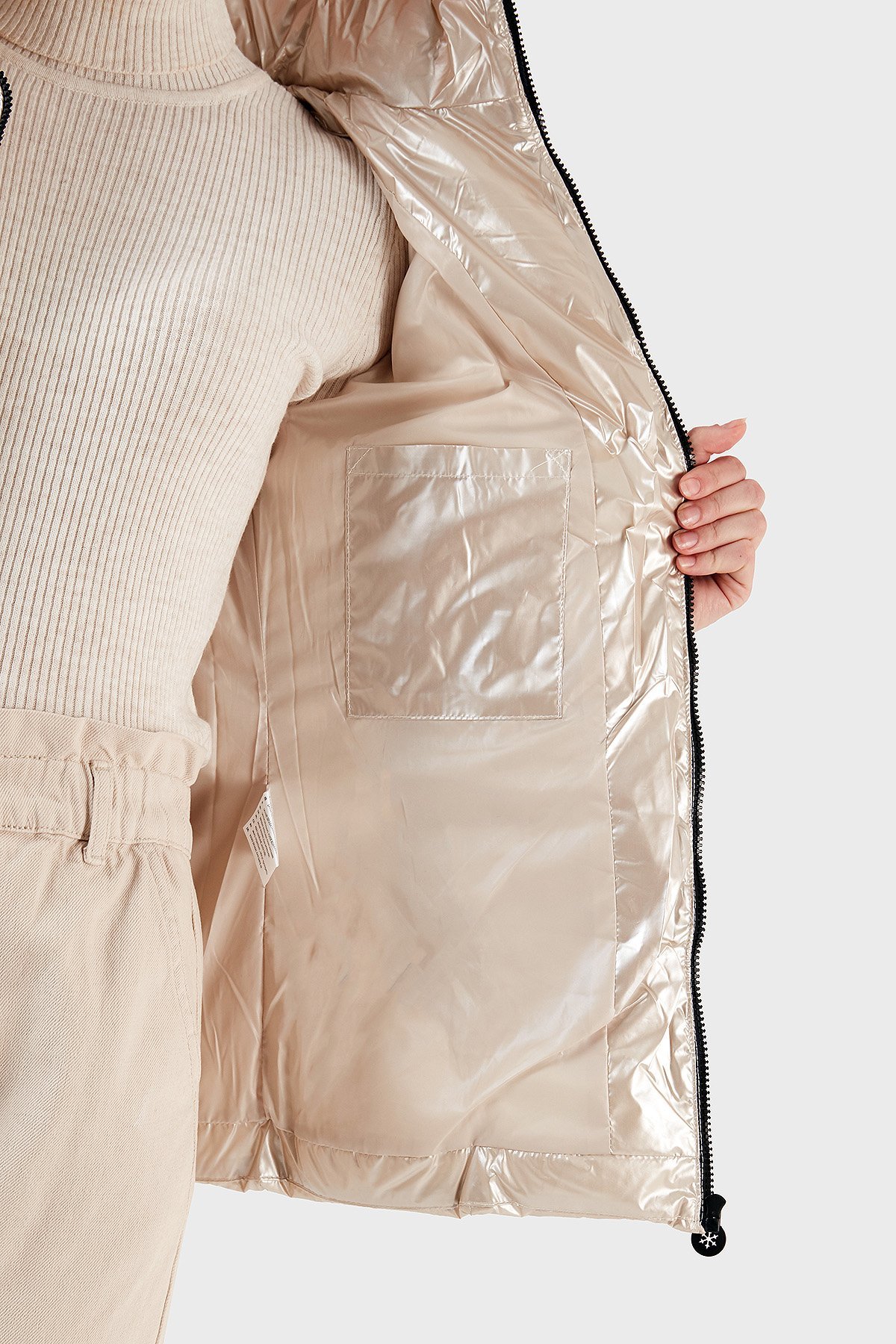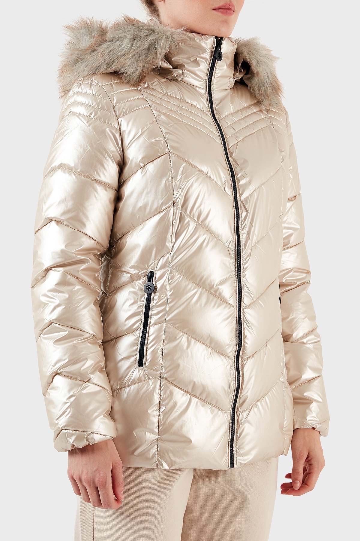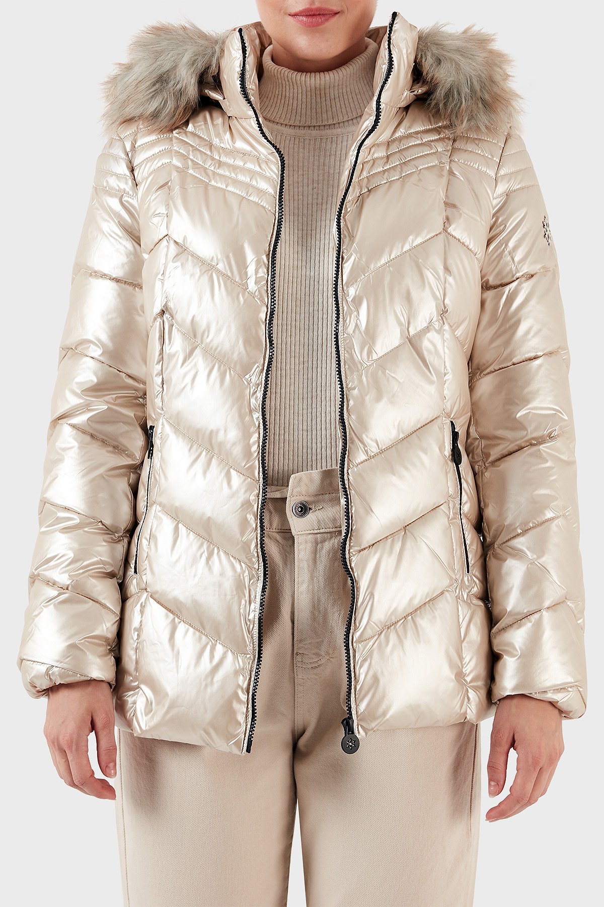 Su Geçirmez Isı Yalıtımlı Çıkarılabilir Kapüşonlu Softshell Bayan Mont BOSHINY BEJ