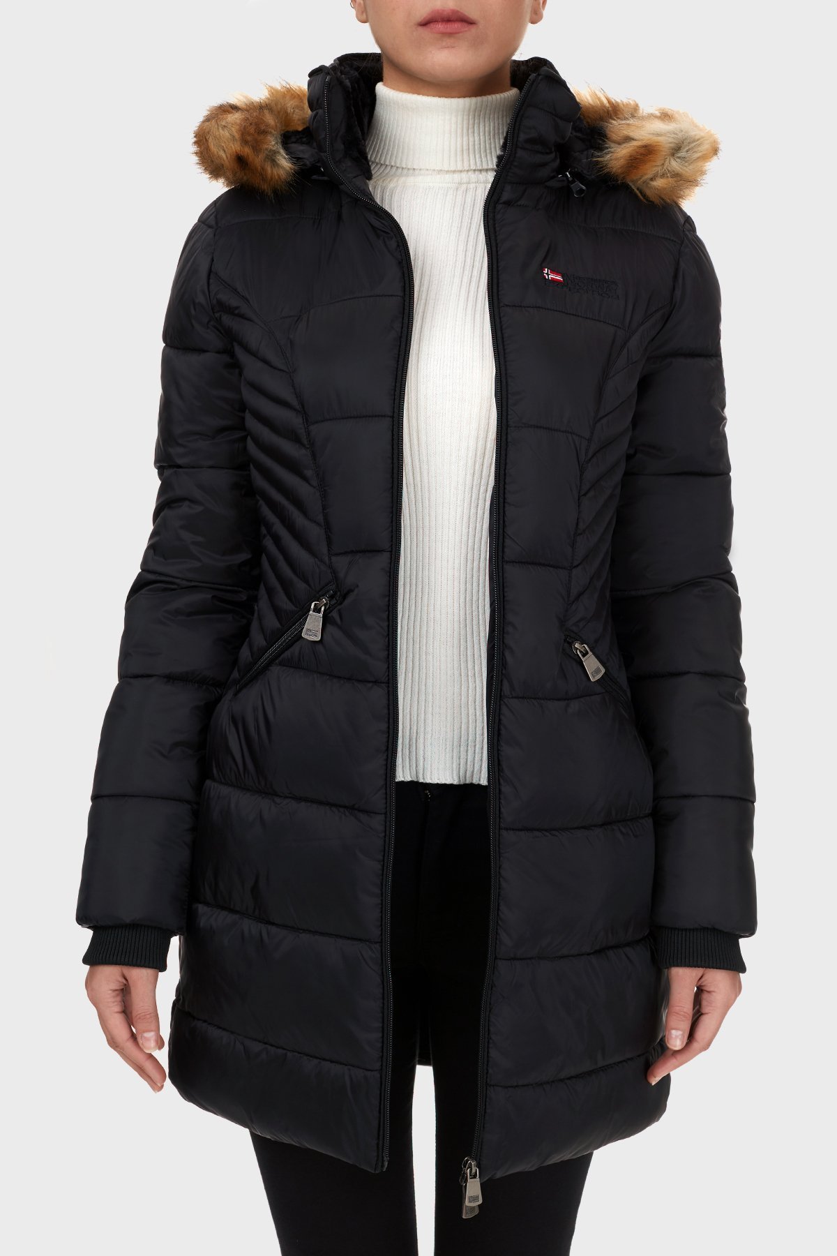-Suni kürklü kapüşon çıkarılabilir