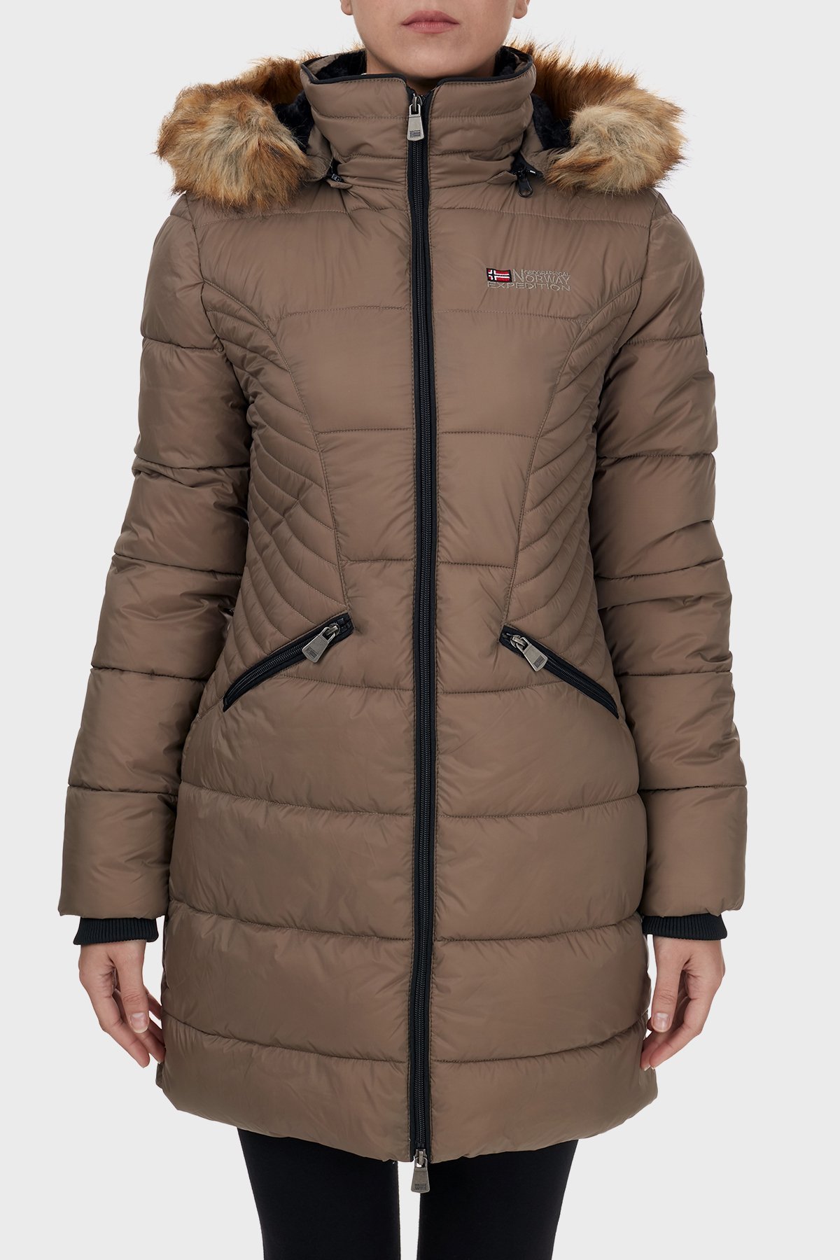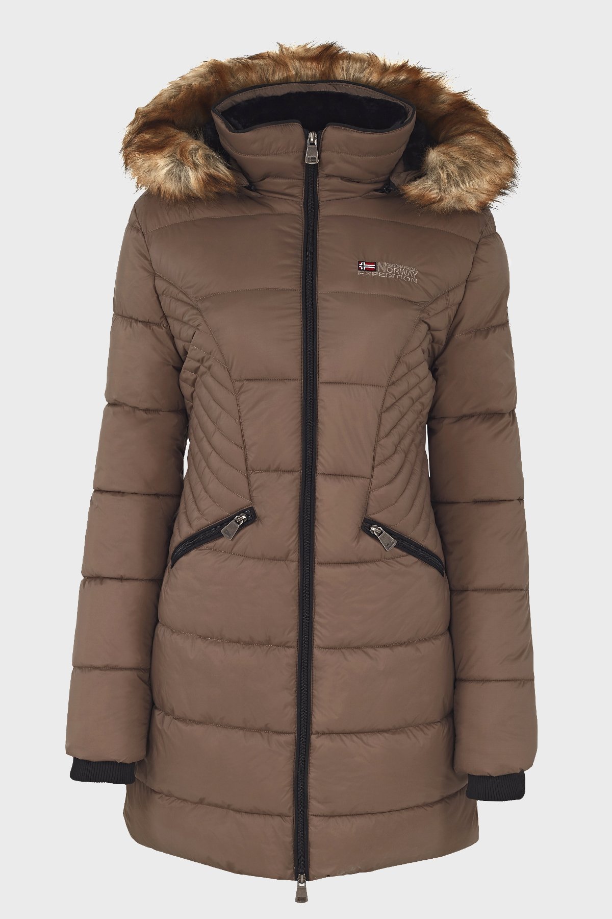 Suya ve Soğuğa Dayanıklı Kapüşonlu Bayan Parka ABEILLE VİZON