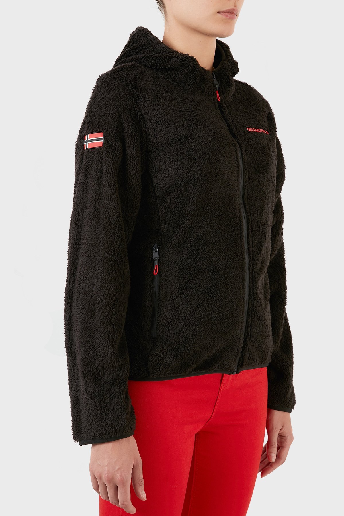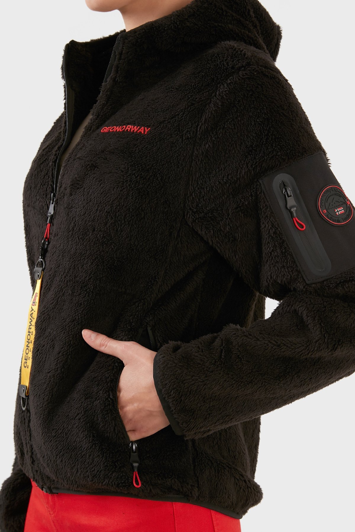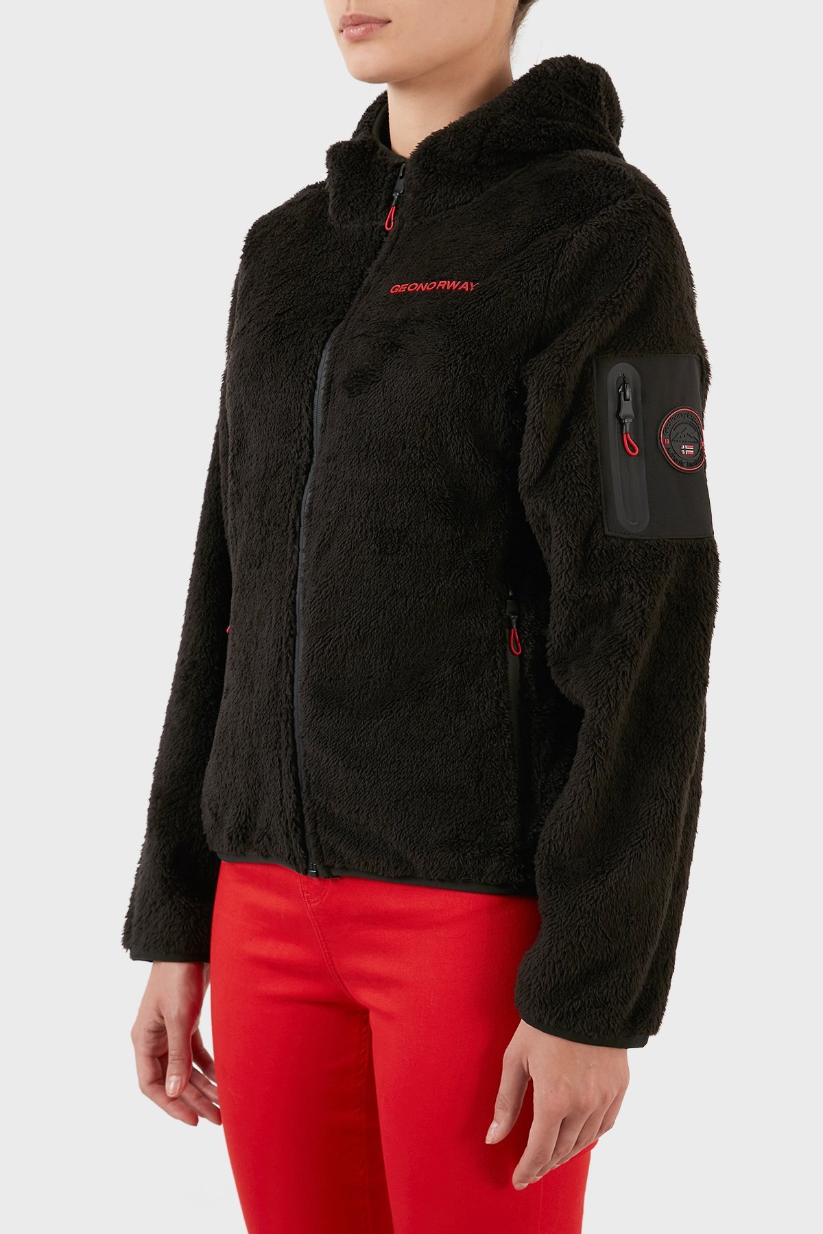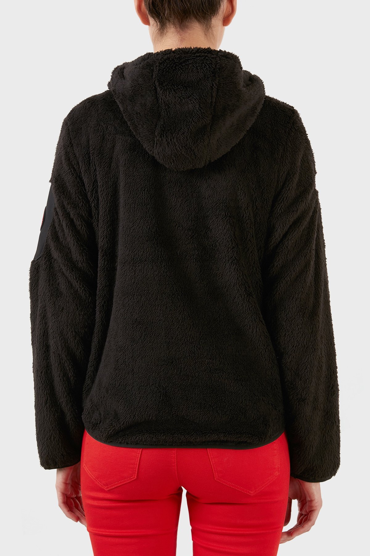 Yumuşak Dokulu Soğuğa Dayanıklı Kapüşonlu Bayan Polar ULEBA SİYAH