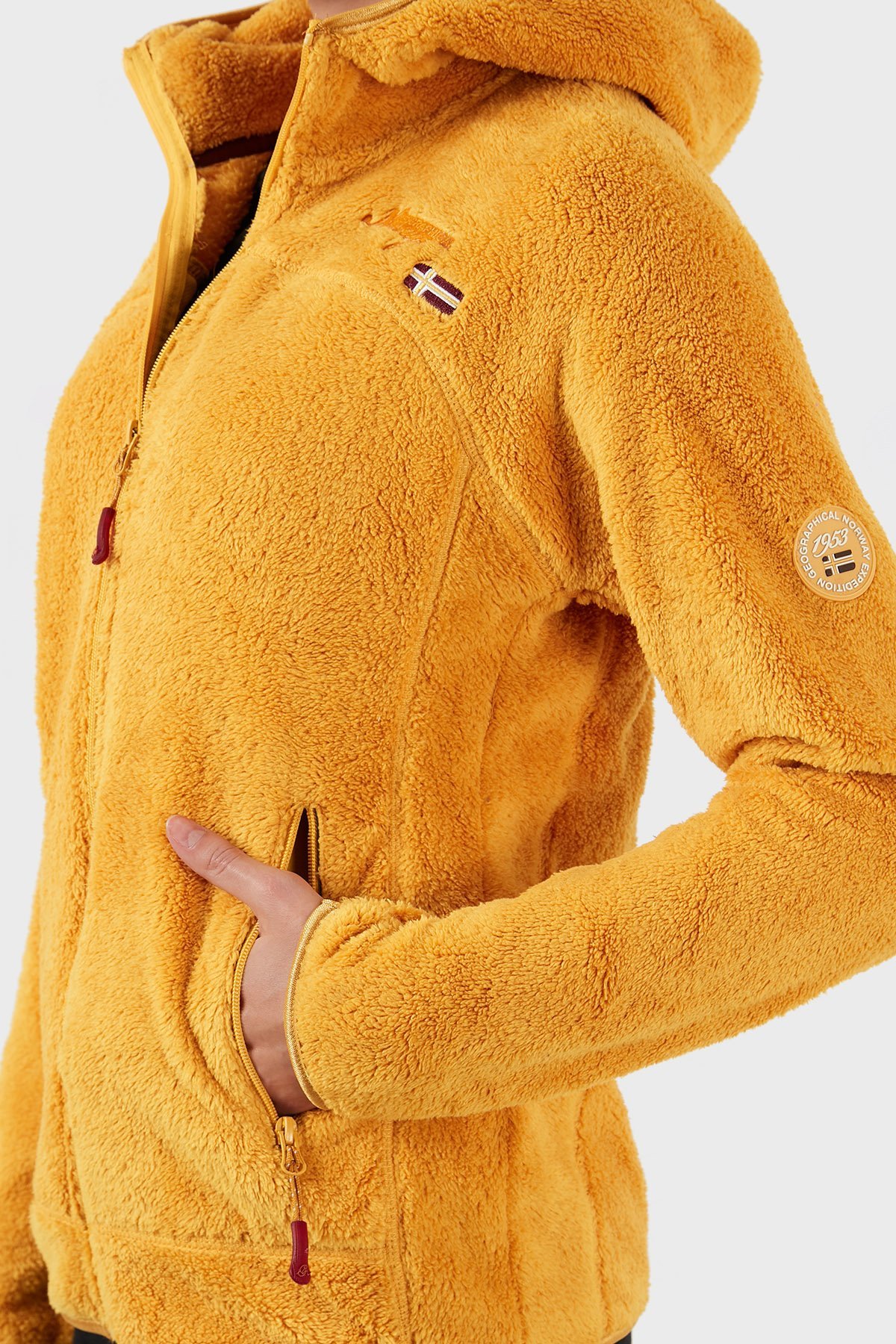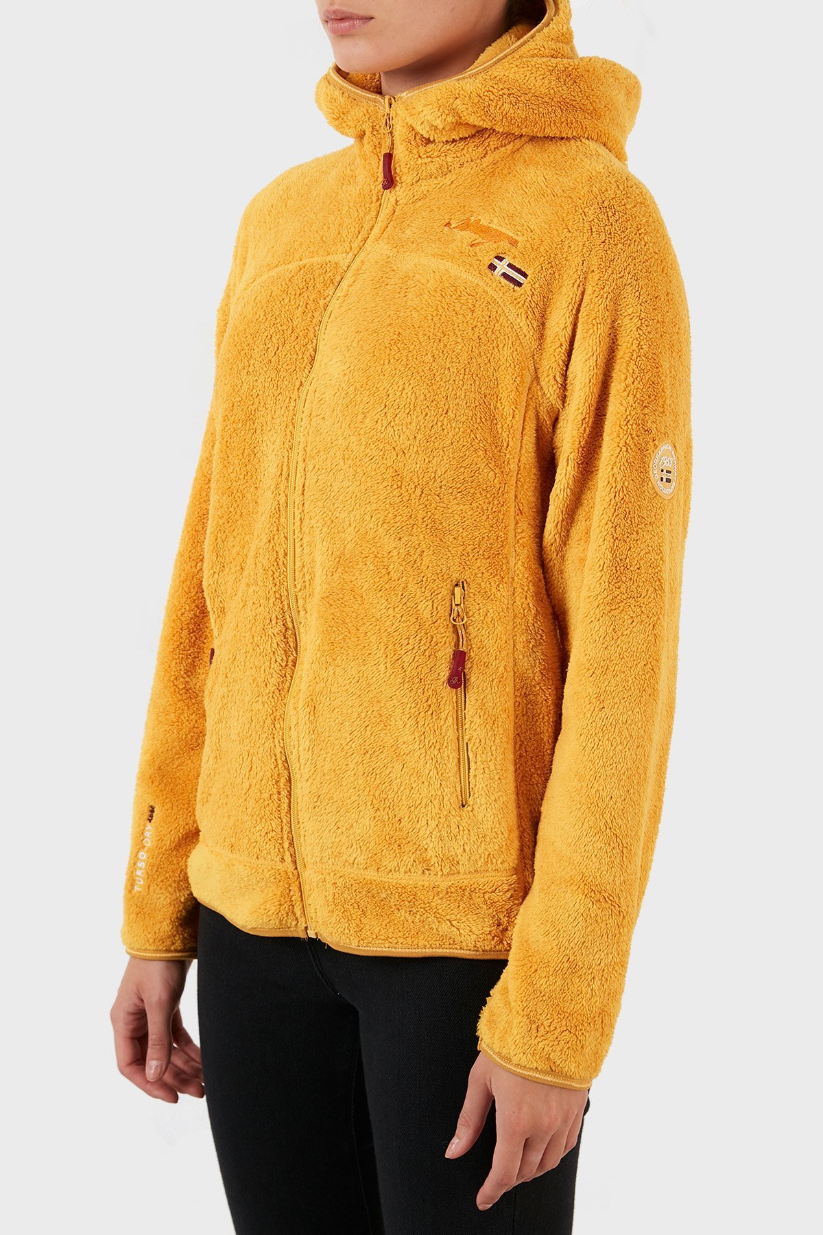 Yumuşak Dokulu Soğuğa Dayanıklı Kapüşonlu Bayan Polar UPALOOD HARDAL