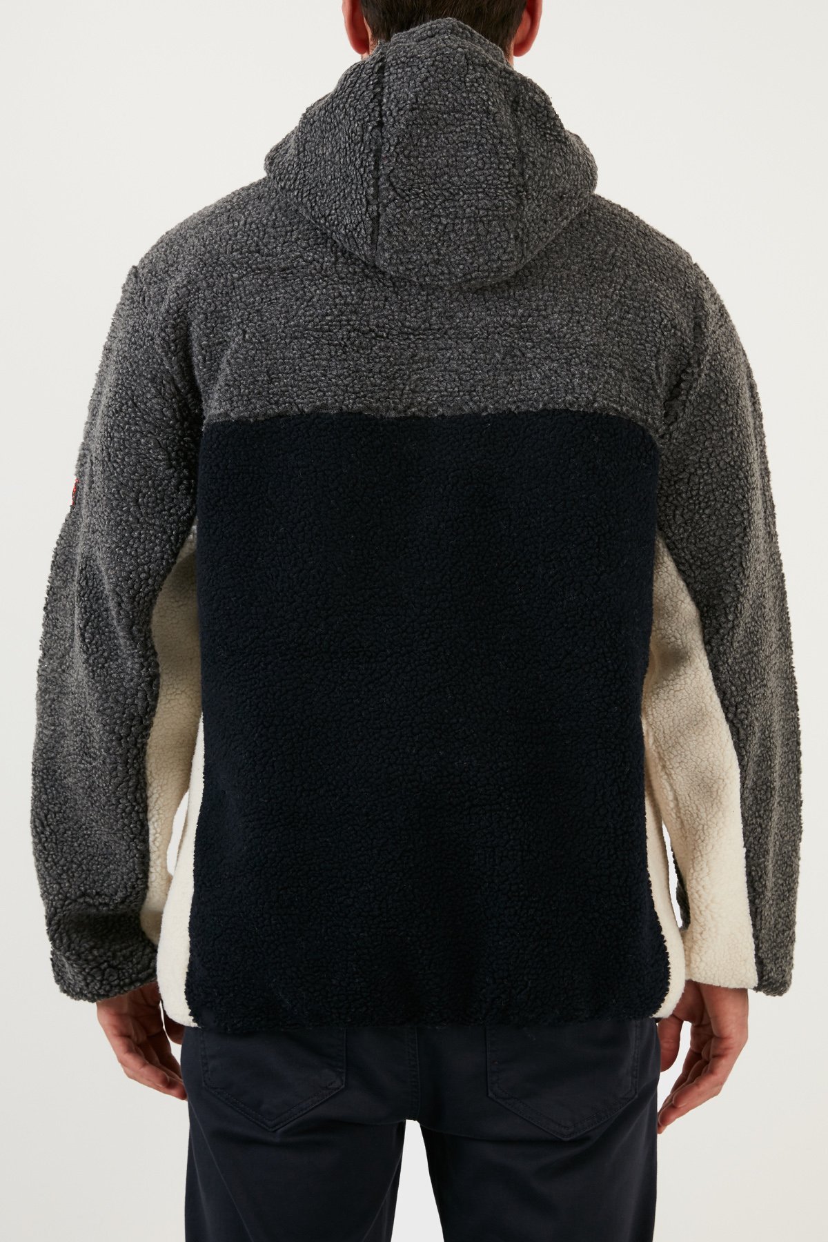 Yumuşak Dokulu Soğuğa Dayanıklı Kapüşonlu Erkek Polar RIAKOLO LACİVERT