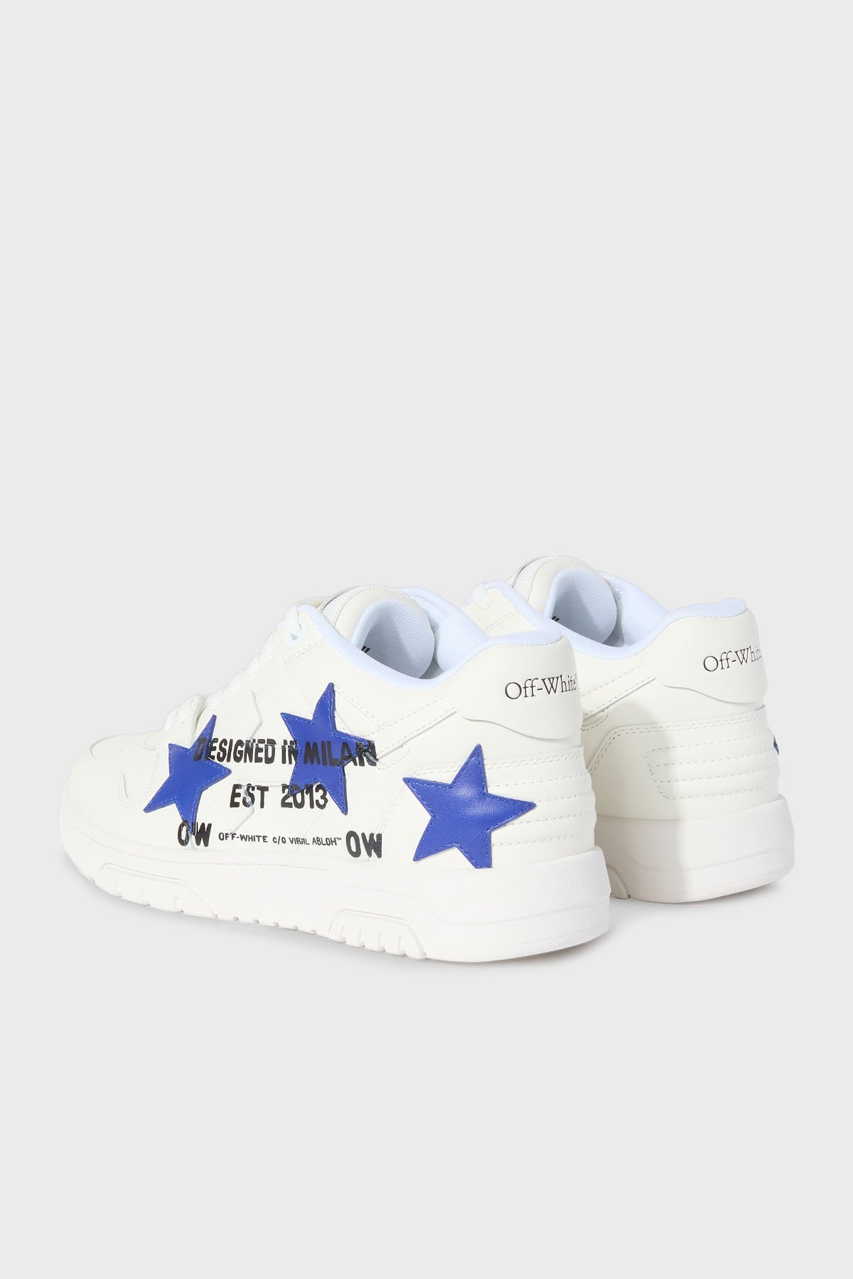 Off-White Yıldız Baskılı Deri Sneaker Erkek Ayakkabı OMIA189S25LEA00D 0145 BEYAZ-MAVİ