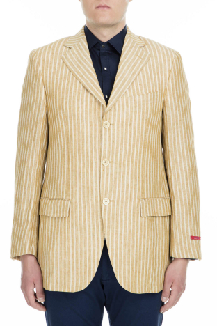 Çizgili Regular Fit Düğmeli Çift Yırtmaçlı Erkek Ceket ZOX64121155 BEJ