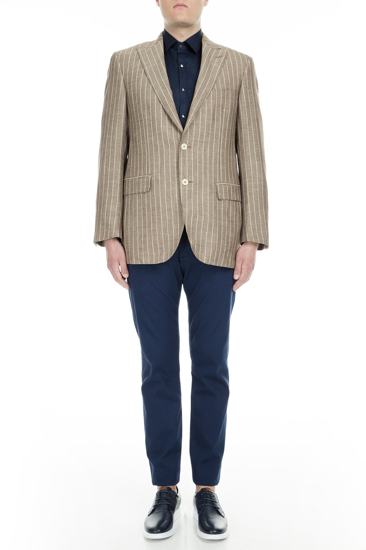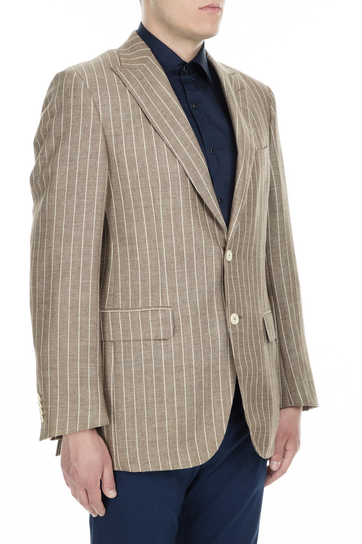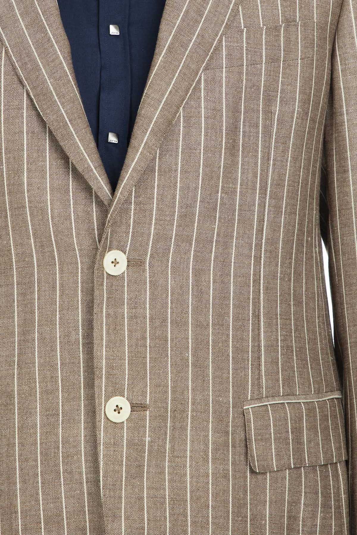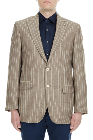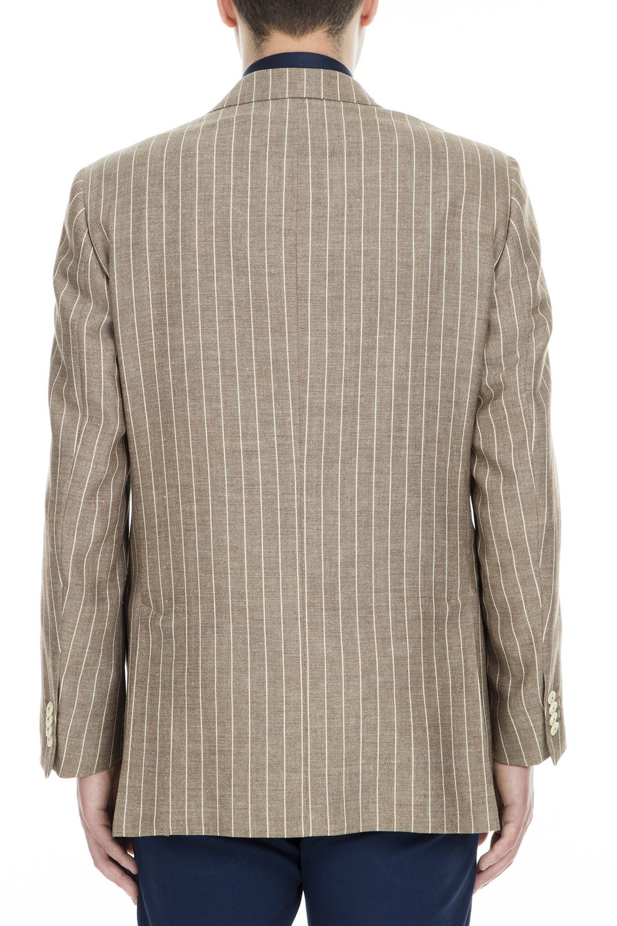 Yünlü Çizgili Regular Fit Düğmeli Çit Yırtmaçlı Erkek Ceket ZOX6412104000 KAHVE