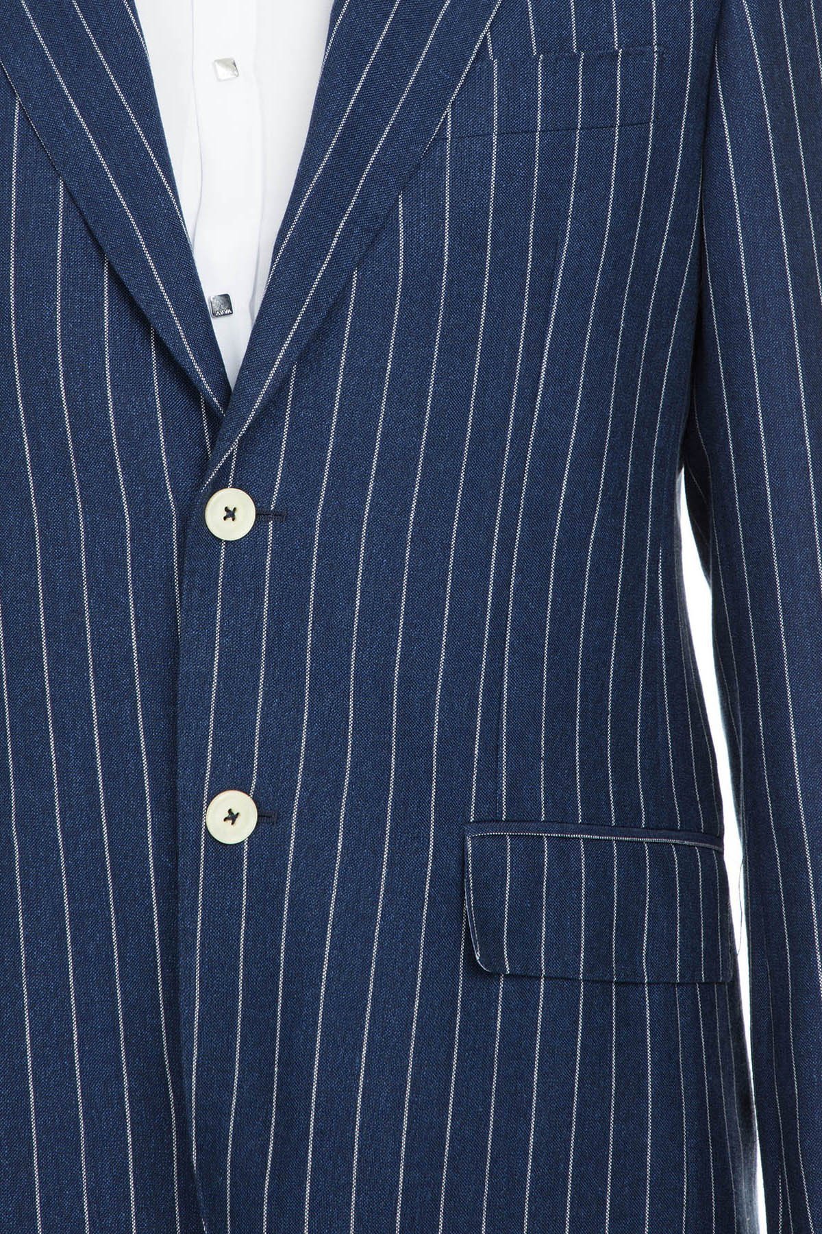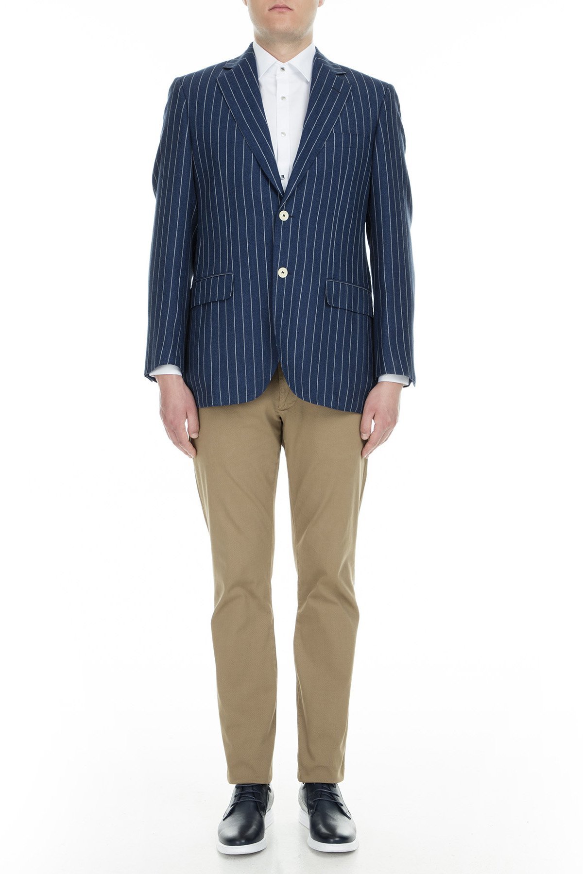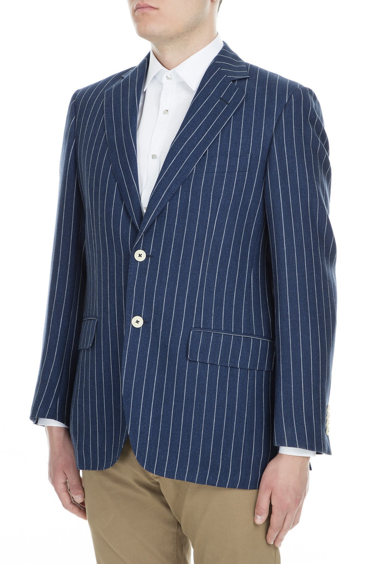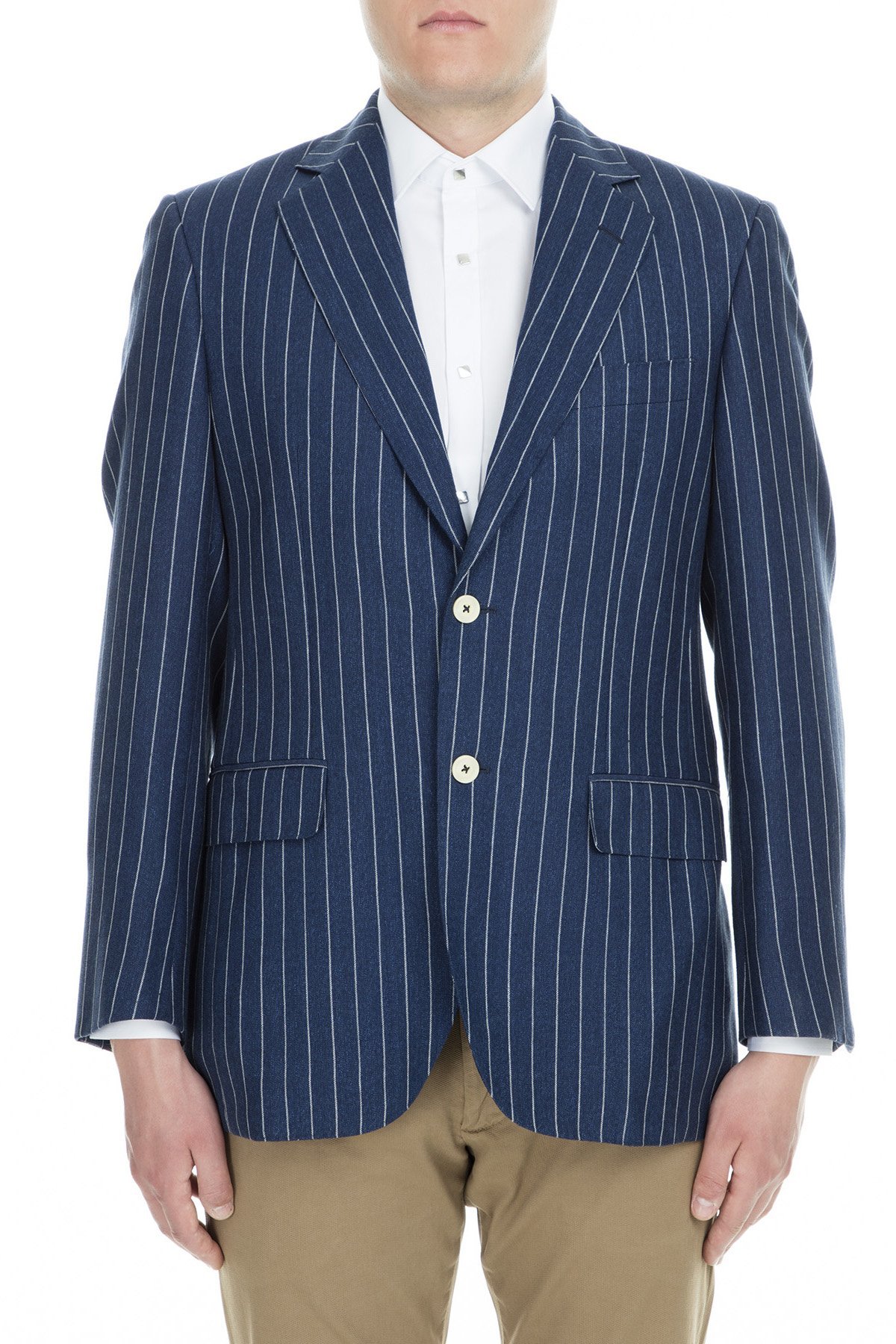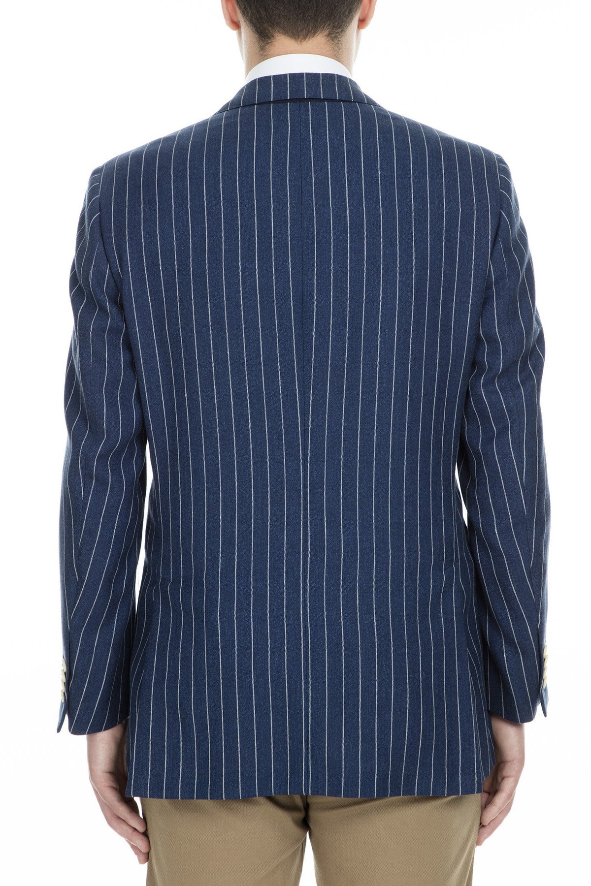 Yünlü Çizgili Regular Fit Düğmeli Çit Yırtmaçlı Erkek Ceket ZOX6412104000 LACİVERT
