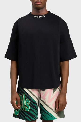 % 100 Pamuk Oversize Fit Logo Baskılı Bisiklet Yaka Erkek T Shirt PMAA10BS26JER001 SİYAH