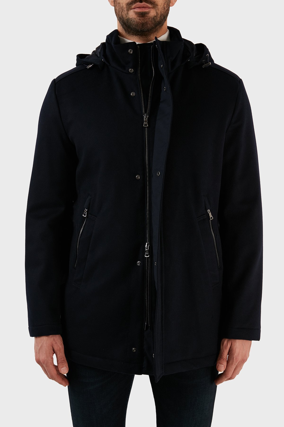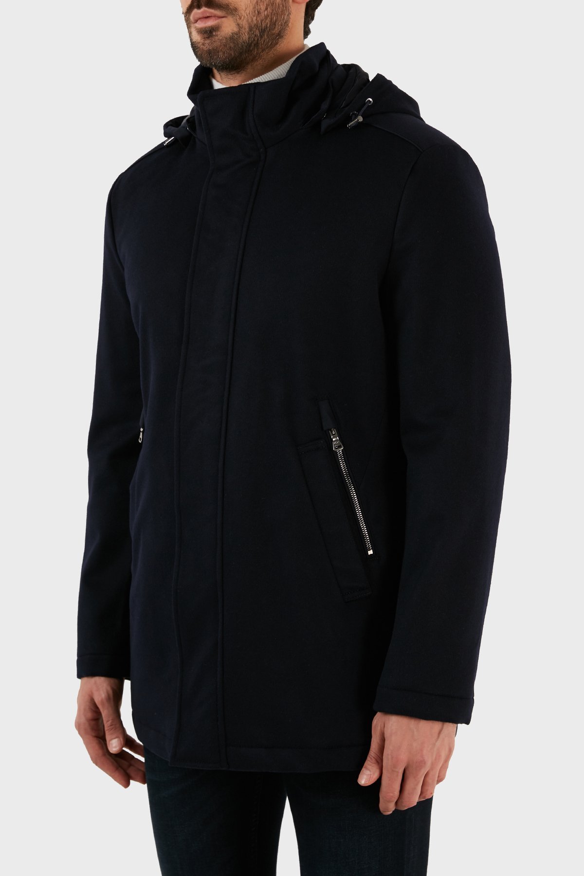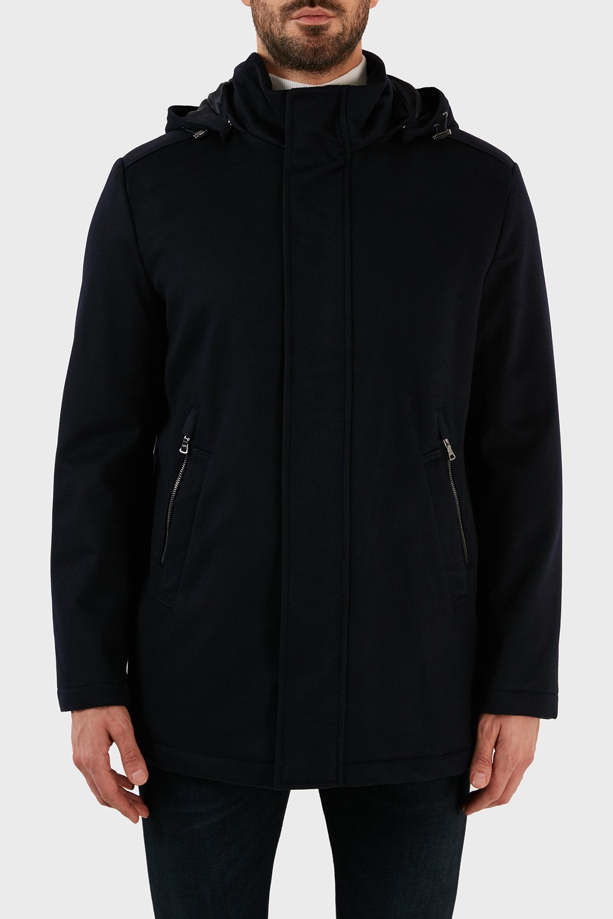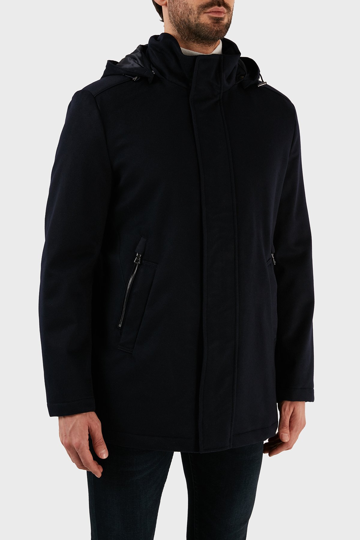 Kaşmir Karışımlı Regular Fit Çıkarılabilir Kapüşonlu Erkek Kaban 12312406 050 LACİVERT