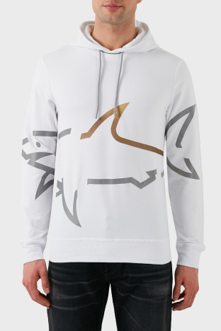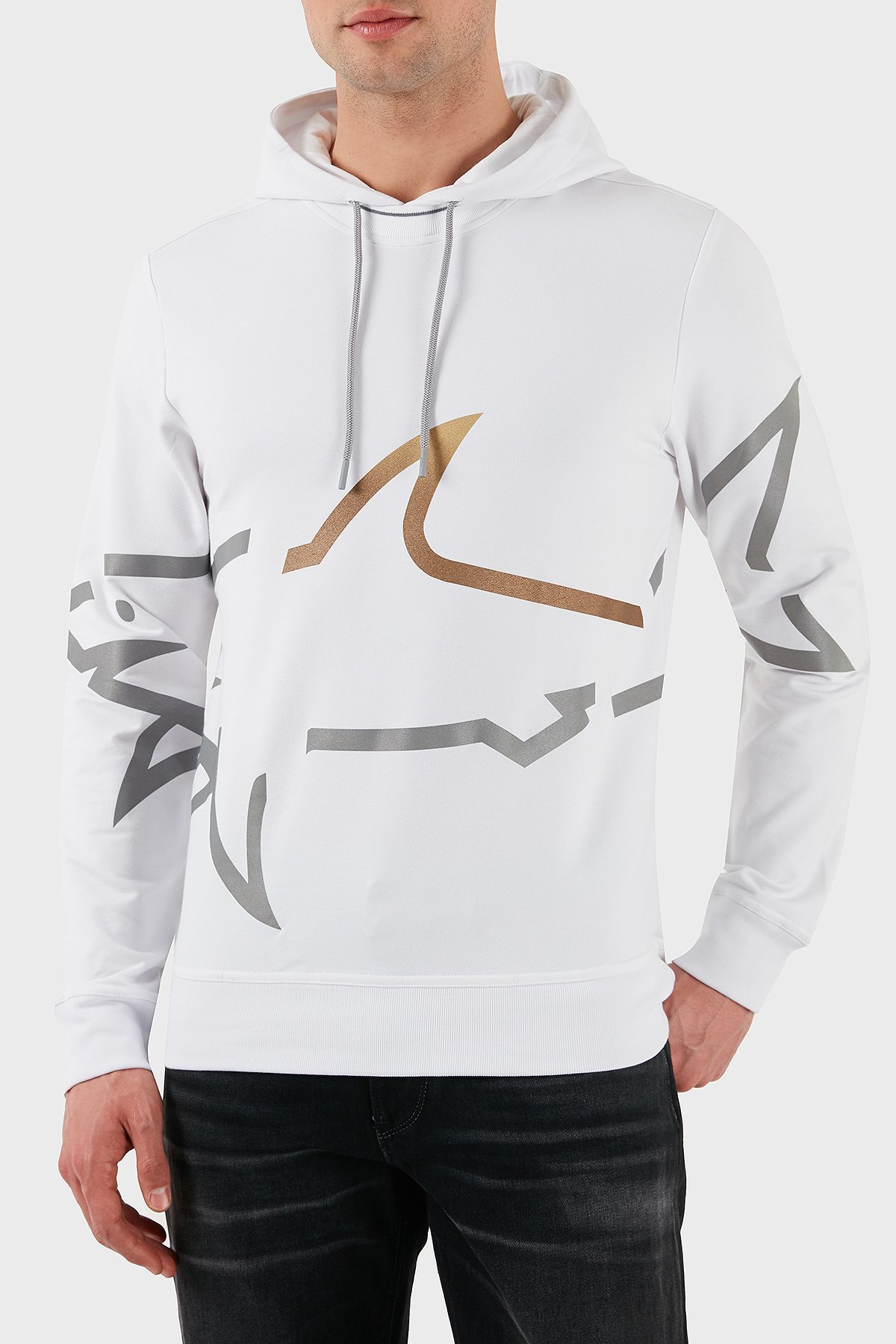Logo Baskılı Streç Pamuklu Regular Fit Kapüşonlu Erkek Sweat 24411882 010 BEYAZ