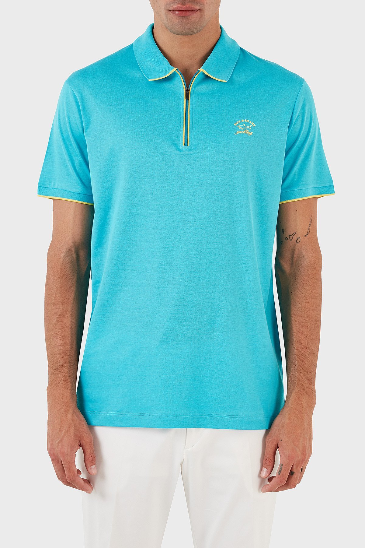 Pamuklu Regular Fit Fermuarlı Erkek Polo Yaka T Shirt 23411287 750 TURKUAZ