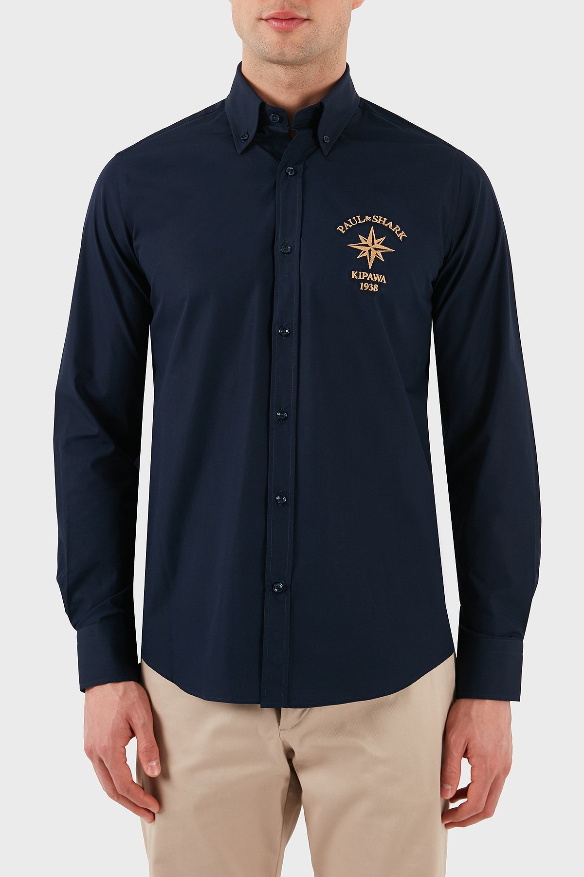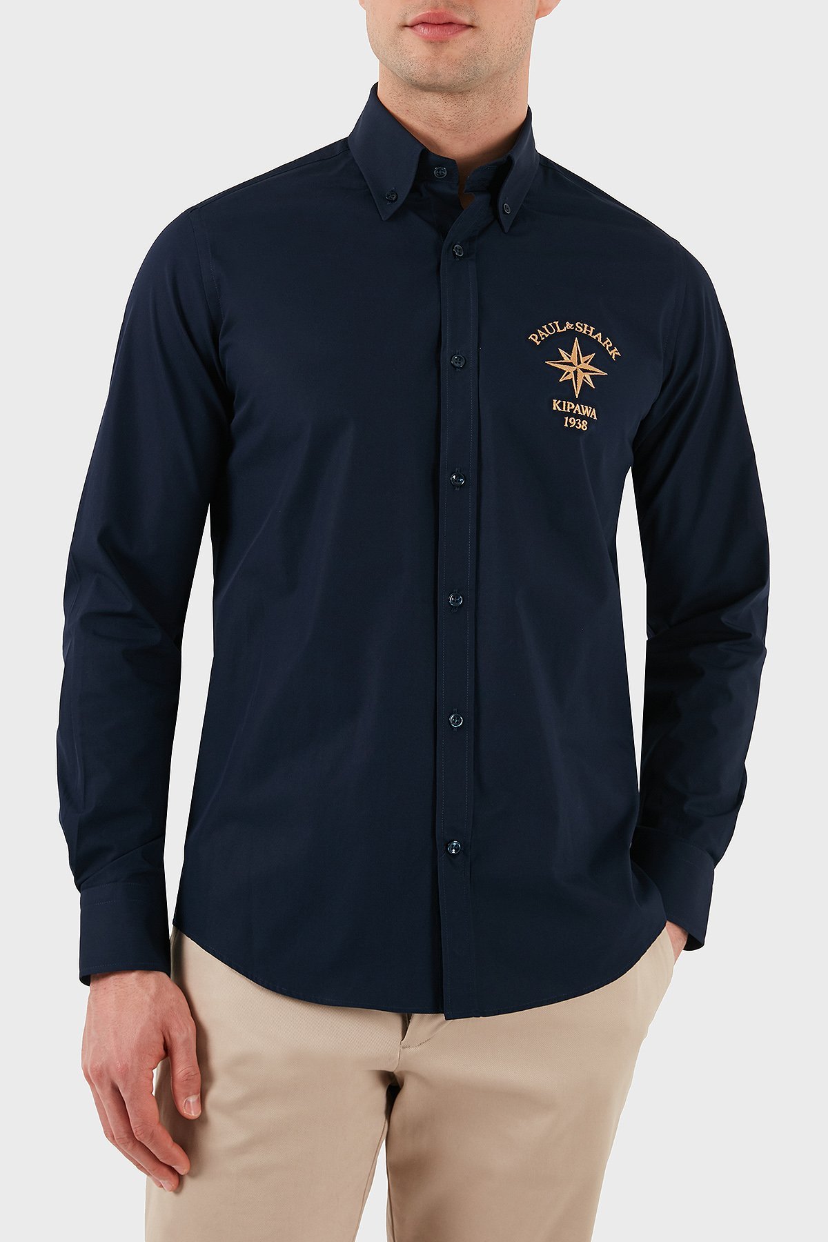Streç Pamuklu Regular Fit Düğmeli Yaka Erkek Gömlek 24413321 050 LACİVERT