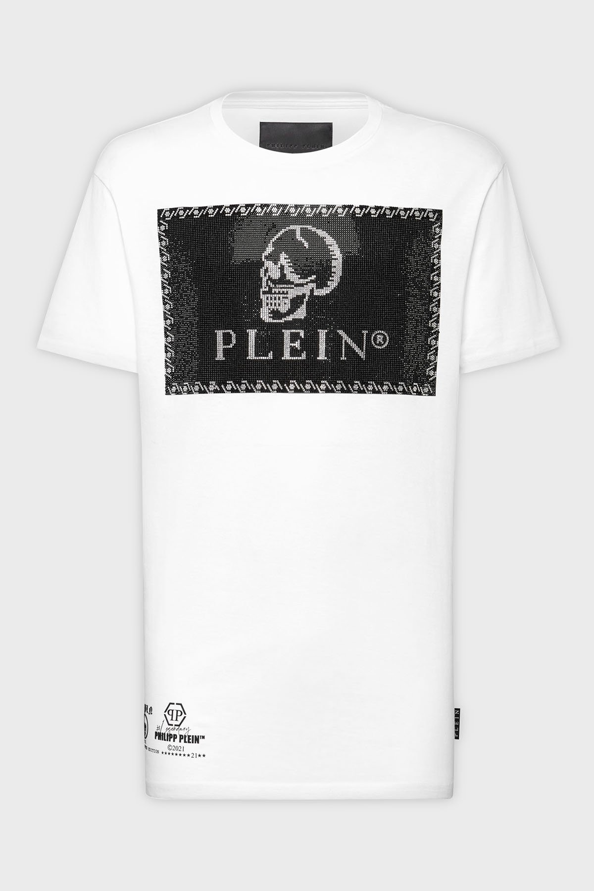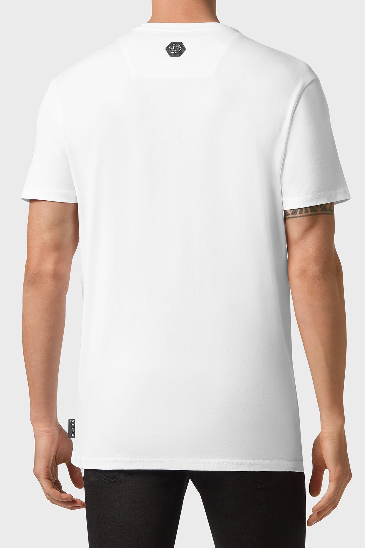 % 100 Pamuk Loose Fit Taşlı Logolu Erkek T Shirt MTK5082 PJY002N 01 BEYAZ
