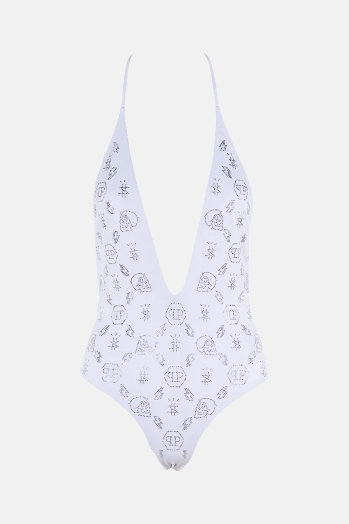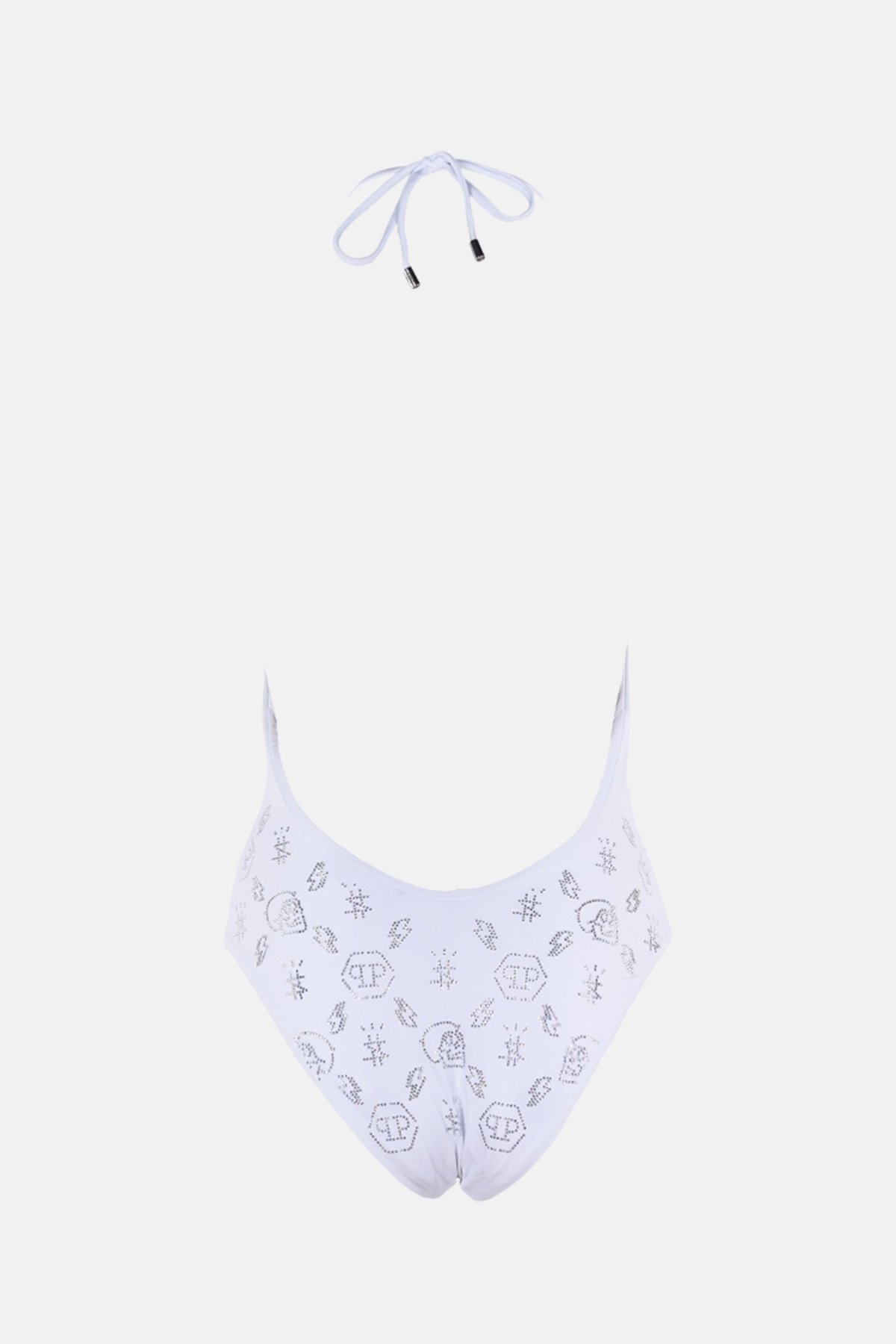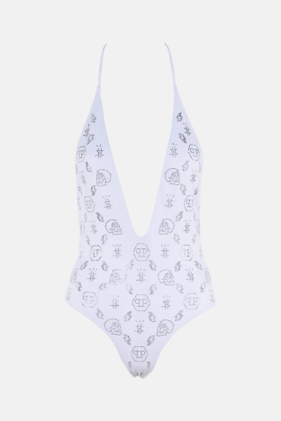 Taş İşlemeli Desenli Logolu Boyundan Bağlamalı Bayan Mayo CDPPI0901 BEYAZ